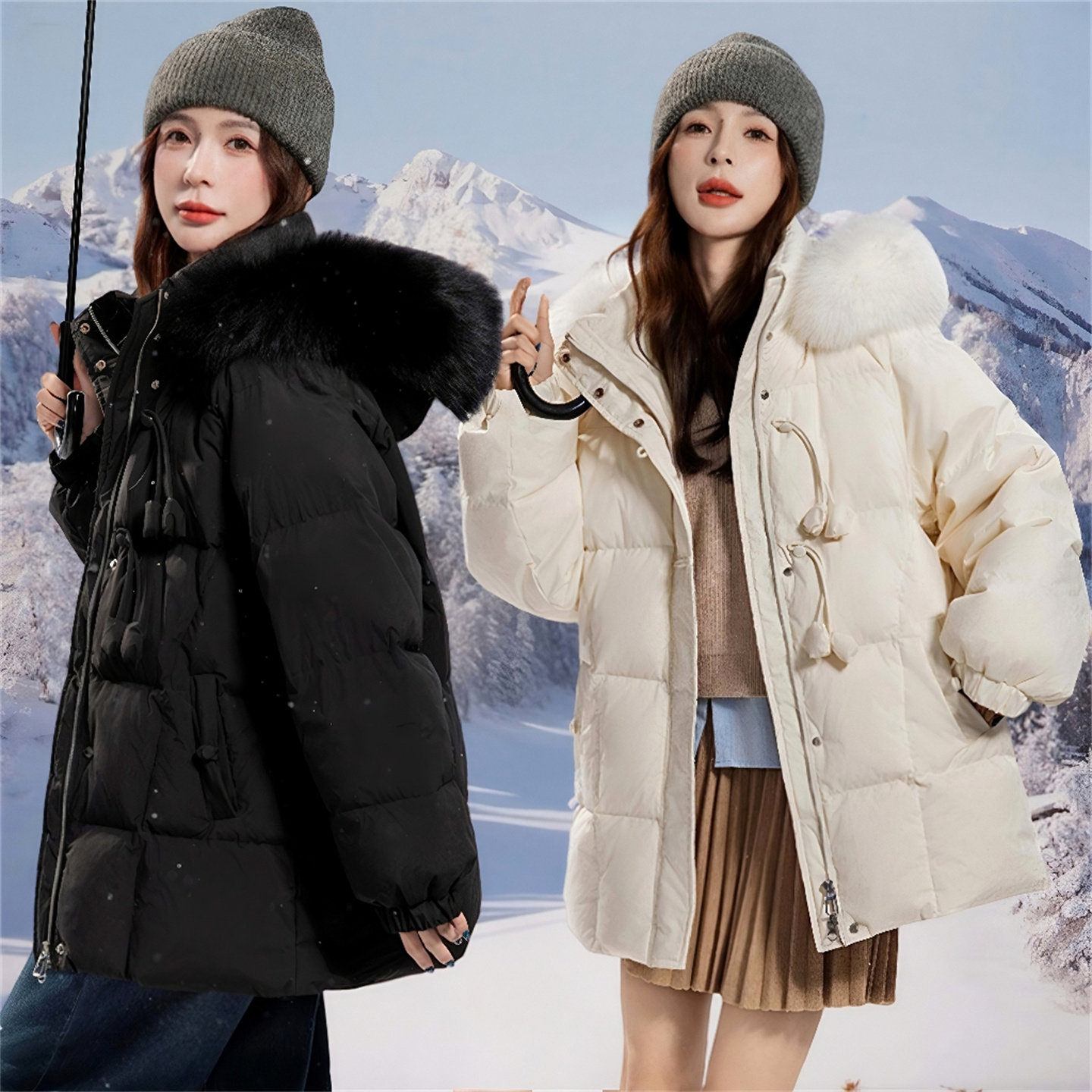 淘VOGANA戛纳家大码女装韩系加长羽绒服冬保暖90白鸭绒连帽加厚外套