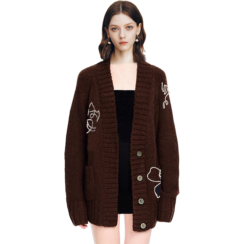 天猫QOOEL慵懒风中长款百搭针织开衫女2025冬季新款宽松洋气毛衣外套