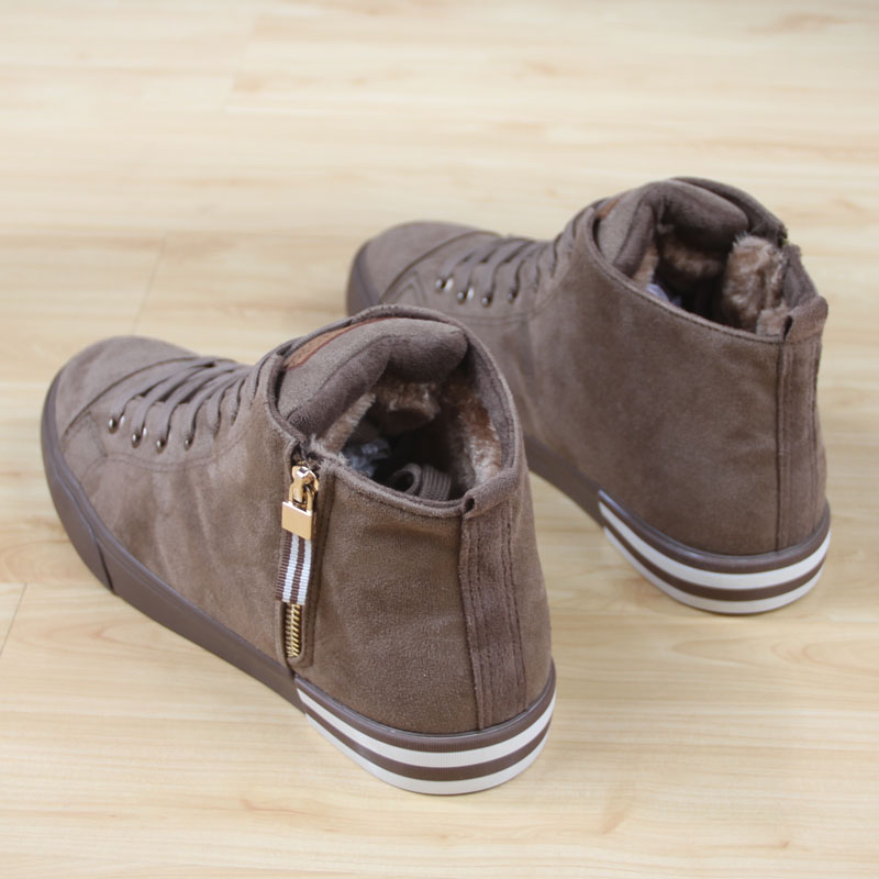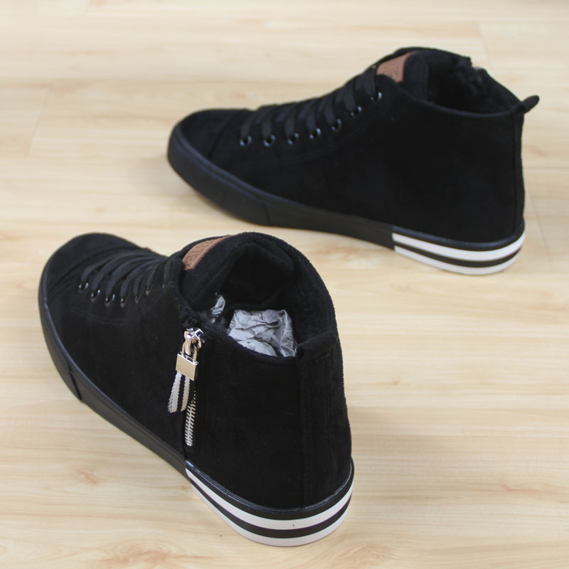 淘宝冬季款人本高帮绒面加厚保暖棉鞋男鞋系带拉链平底学生休闲鞋7507
