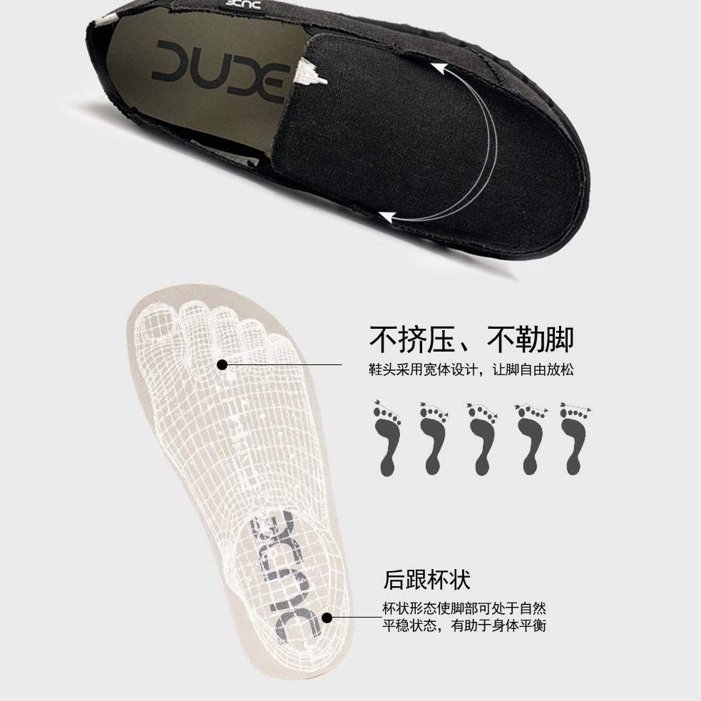 淘宝DUDE都德一脚蹬男鞋夏季透气懒人厚底休闲鞋男软底厚底帆布鞋黑色