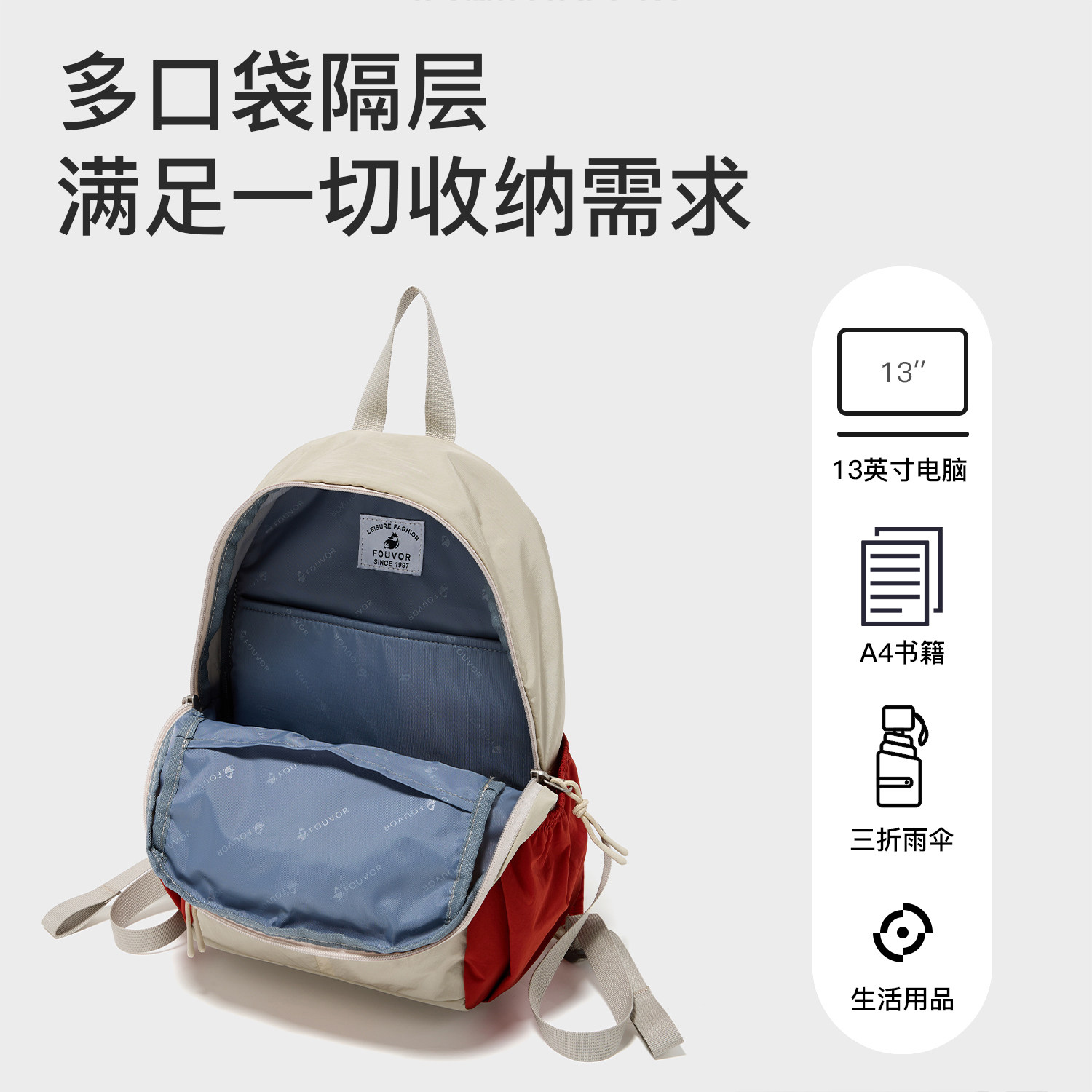 天猫Fouvor火狐户外超轻双肩包男女防水轻便旅行登山包撞色休闲背包