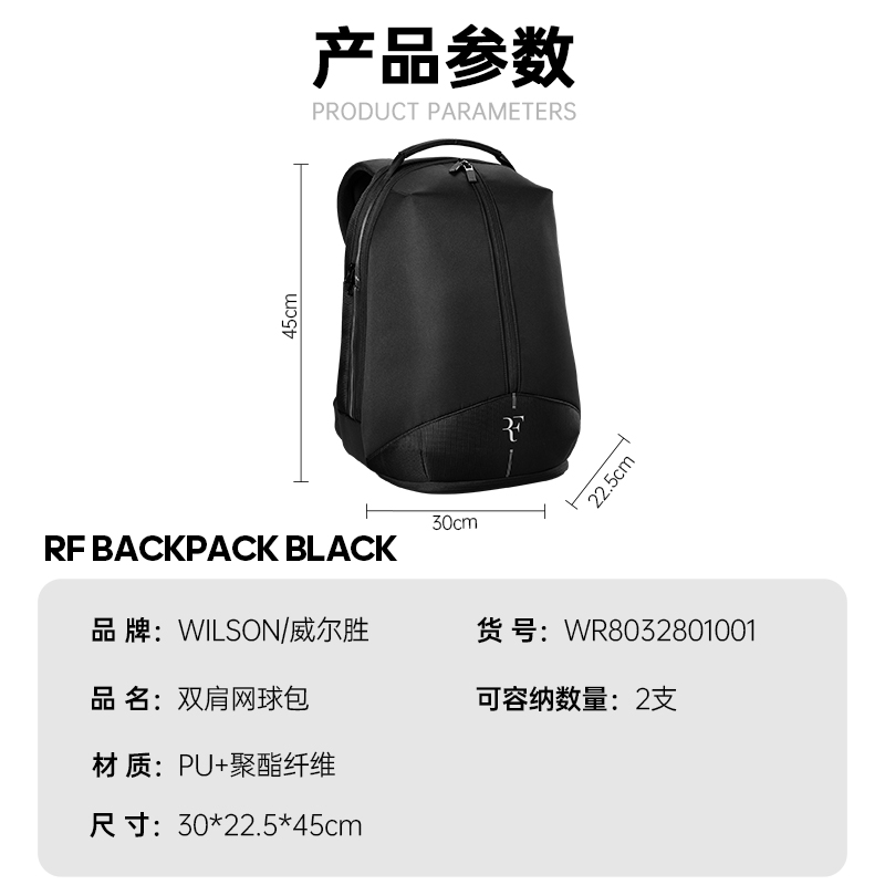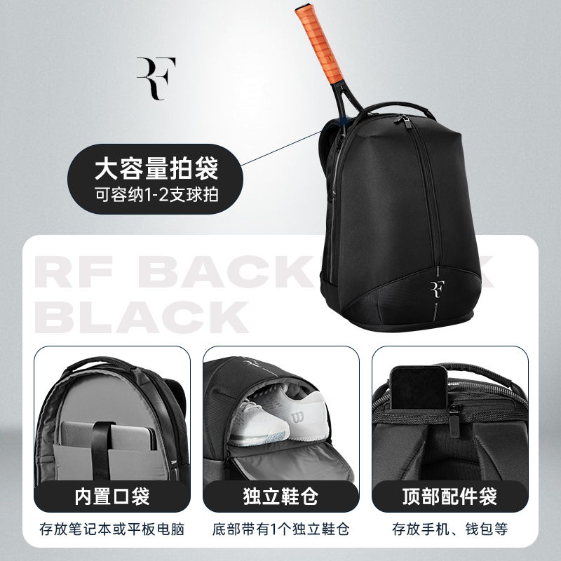 天猫Wilson威尔胜RF01费德勒运动单肩多功能大容量双肩包2支装网球包