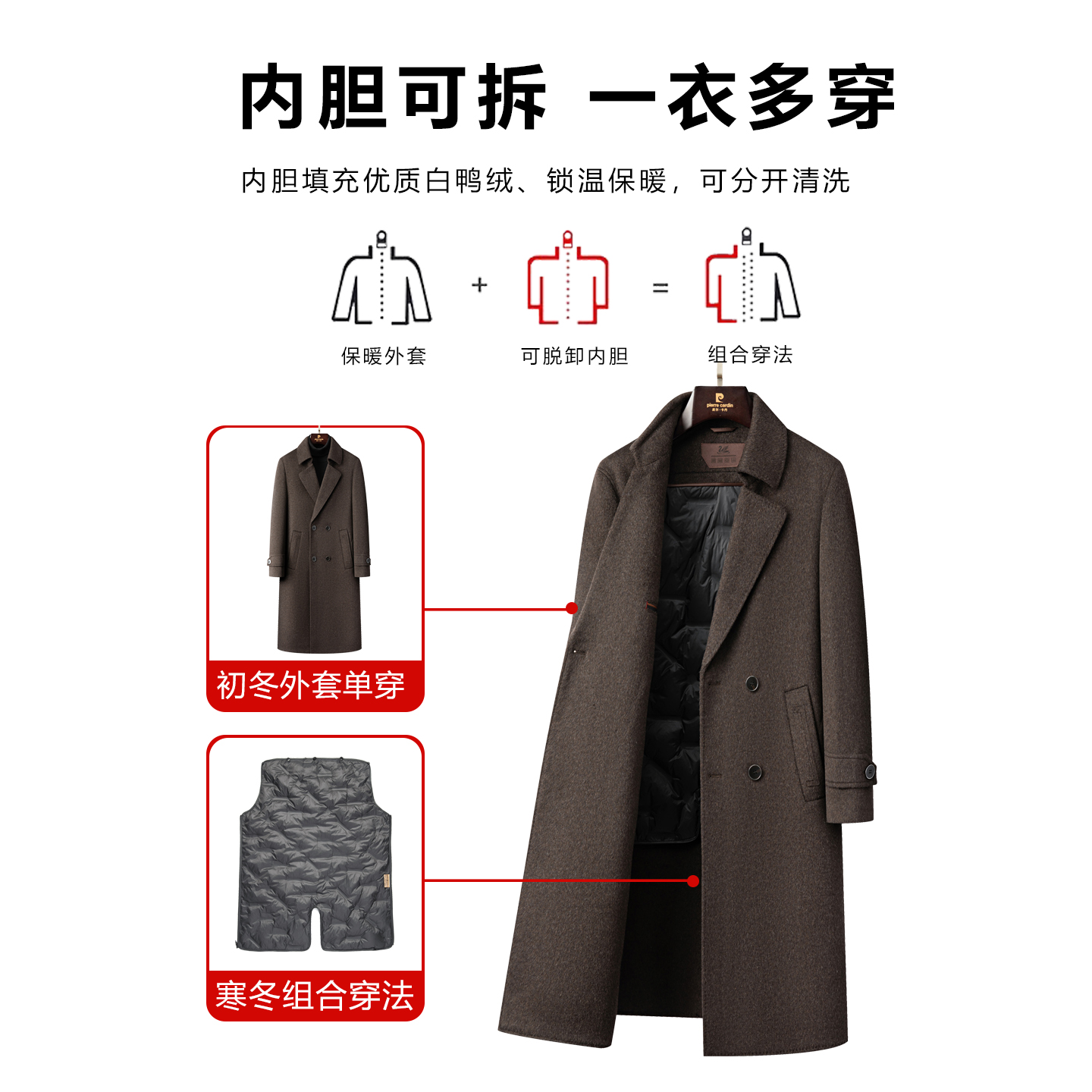 淘宝皮尔卡丹全羊毛双面呢子大衣男羽绒内胆过膝长款加厚毛呢风衣外套