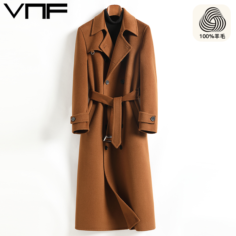 天猫25秋冬新品双面呢大衣男长款过膝腰带羊毛呢大衣双排扣风衣外套厚