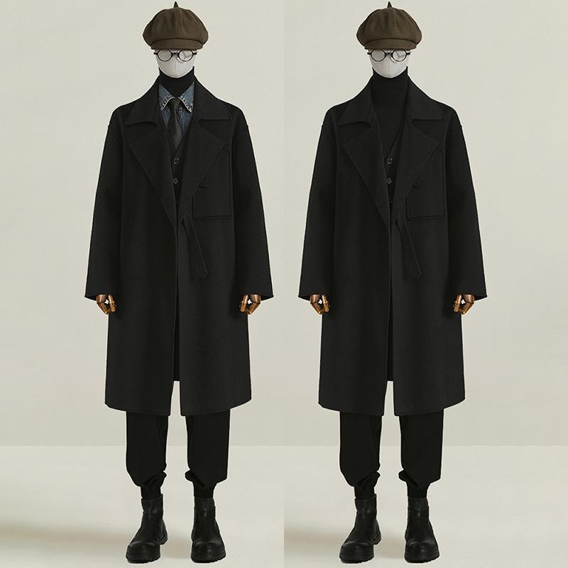 高级感英伦风毛呢大衣男秋韩系氛围感过膝风衣双排扣情侣披风外套