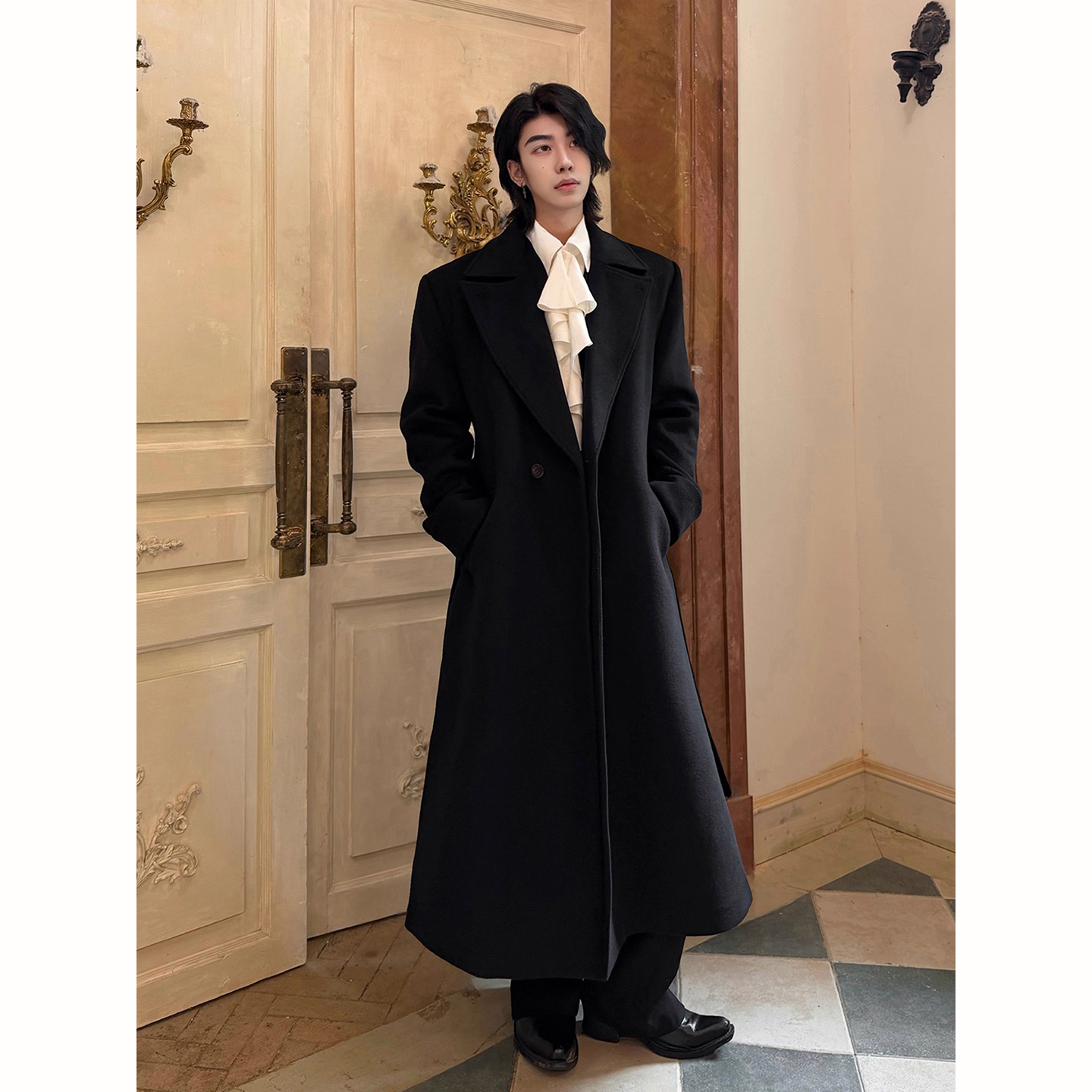 IIILLL童锦程羊毛呢大衣男款冬英伦风中长款保暖加厚呢子风衣外套
