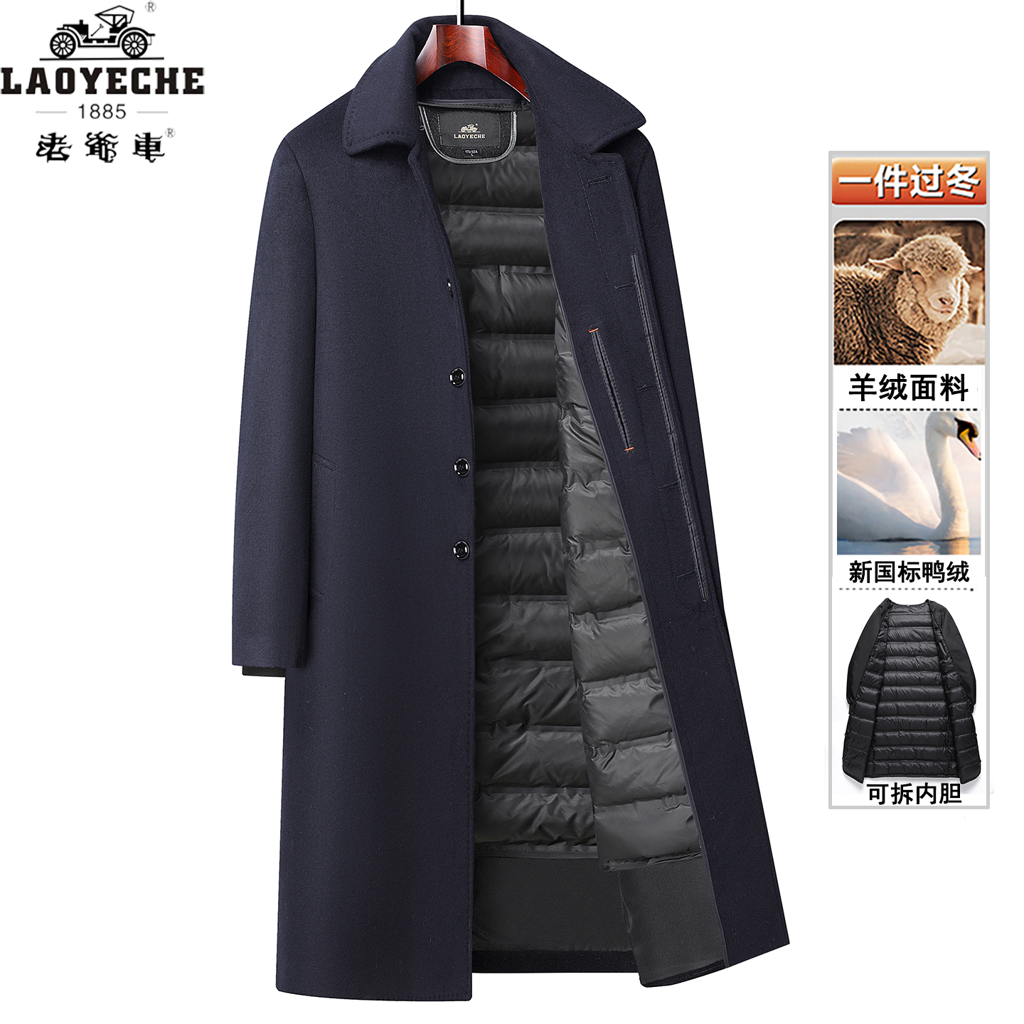 淘宝老爷车中老年人男羊绒大衣男长款过膝盖脱卸羽绒内胆毛呢风衣外套
