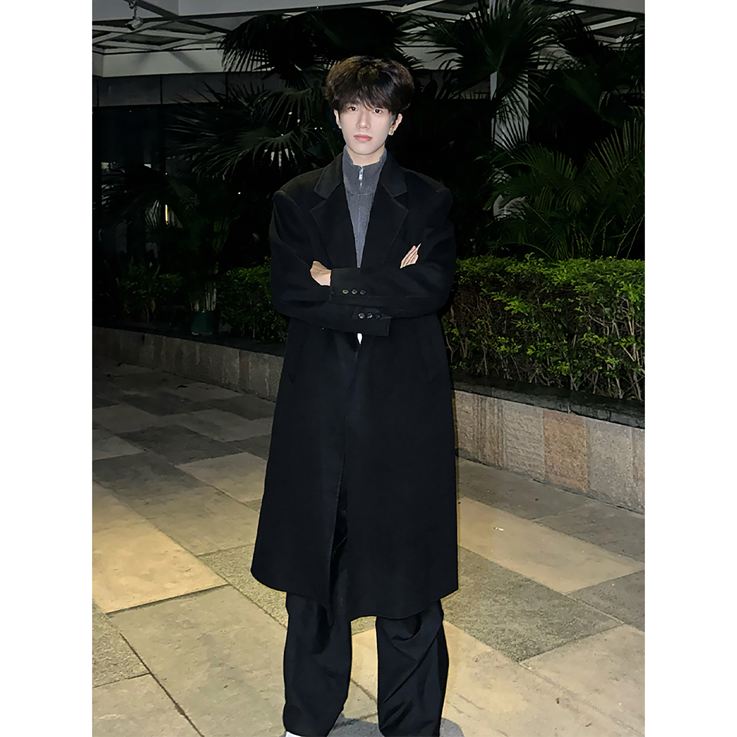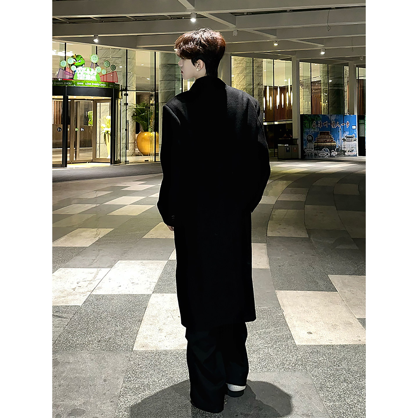 淘MRCYC长款毛呢大衣男秋冬季韩系宽松高级感加棉加厚呢子风衣外套