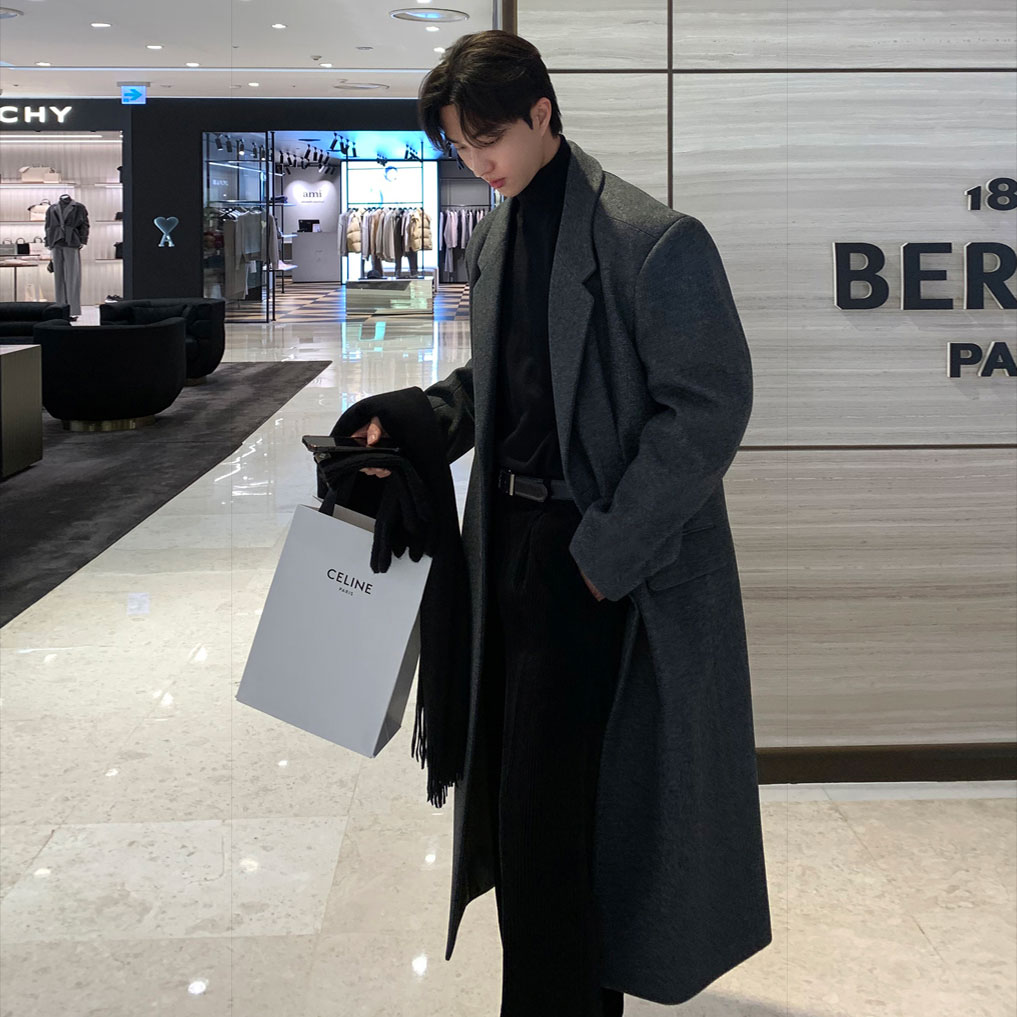 灰色毛呢大衣男中长款冬季加厚保暖过膝高级感潮流呢子风衣外套男
