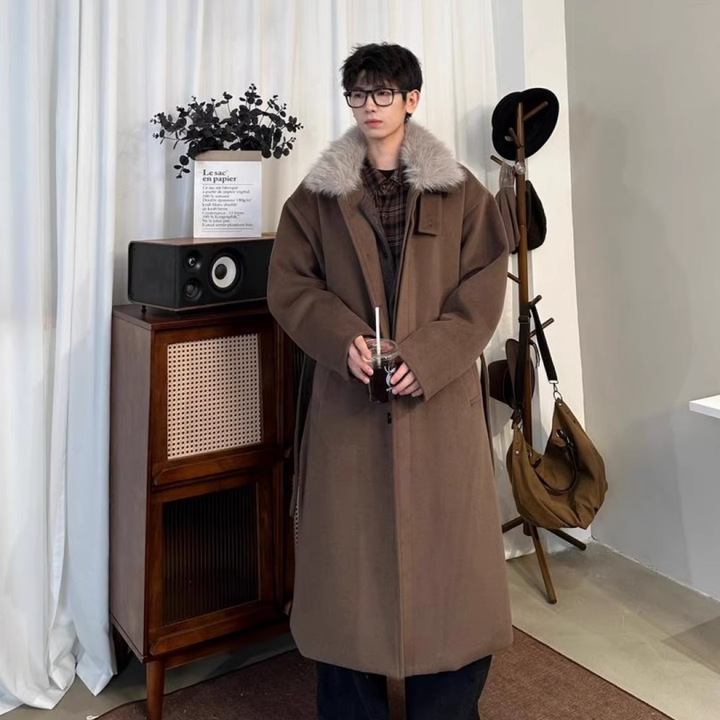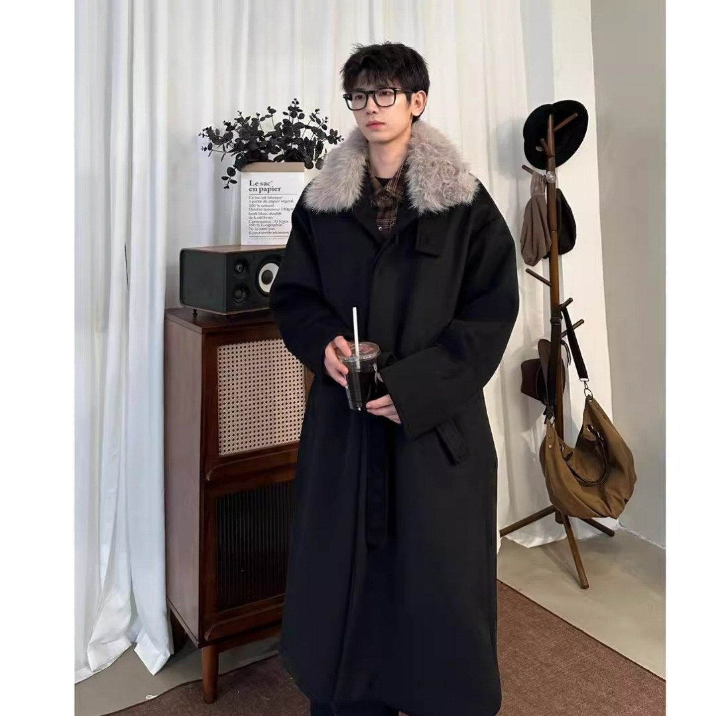 天猫美拉德座山雕呢大衣男秋冬高智新贵风韩系外套可拆卸毛领加棉风衣