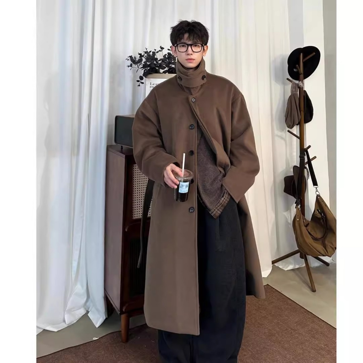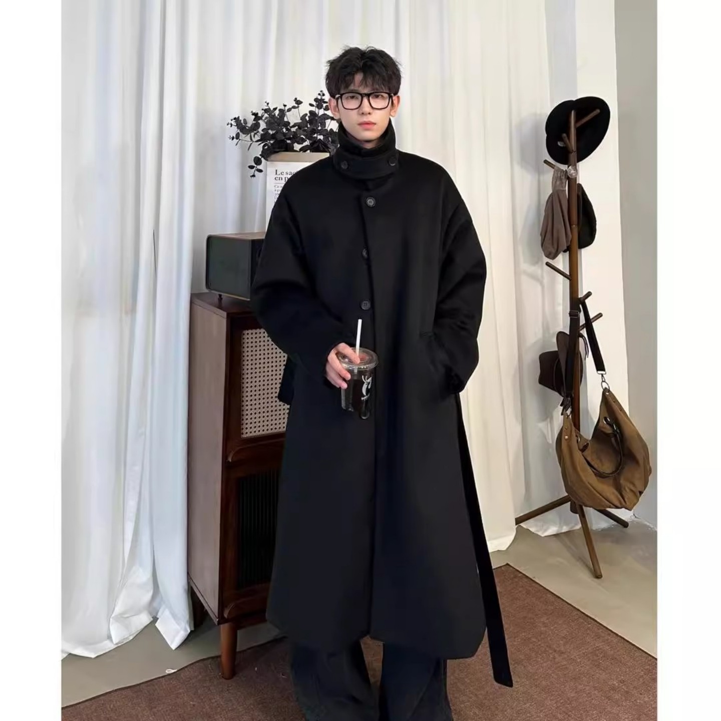 淘NineteenAutumn男士毛呢大衣中长款加棉加厚垫肩韩系风衣呢子外套