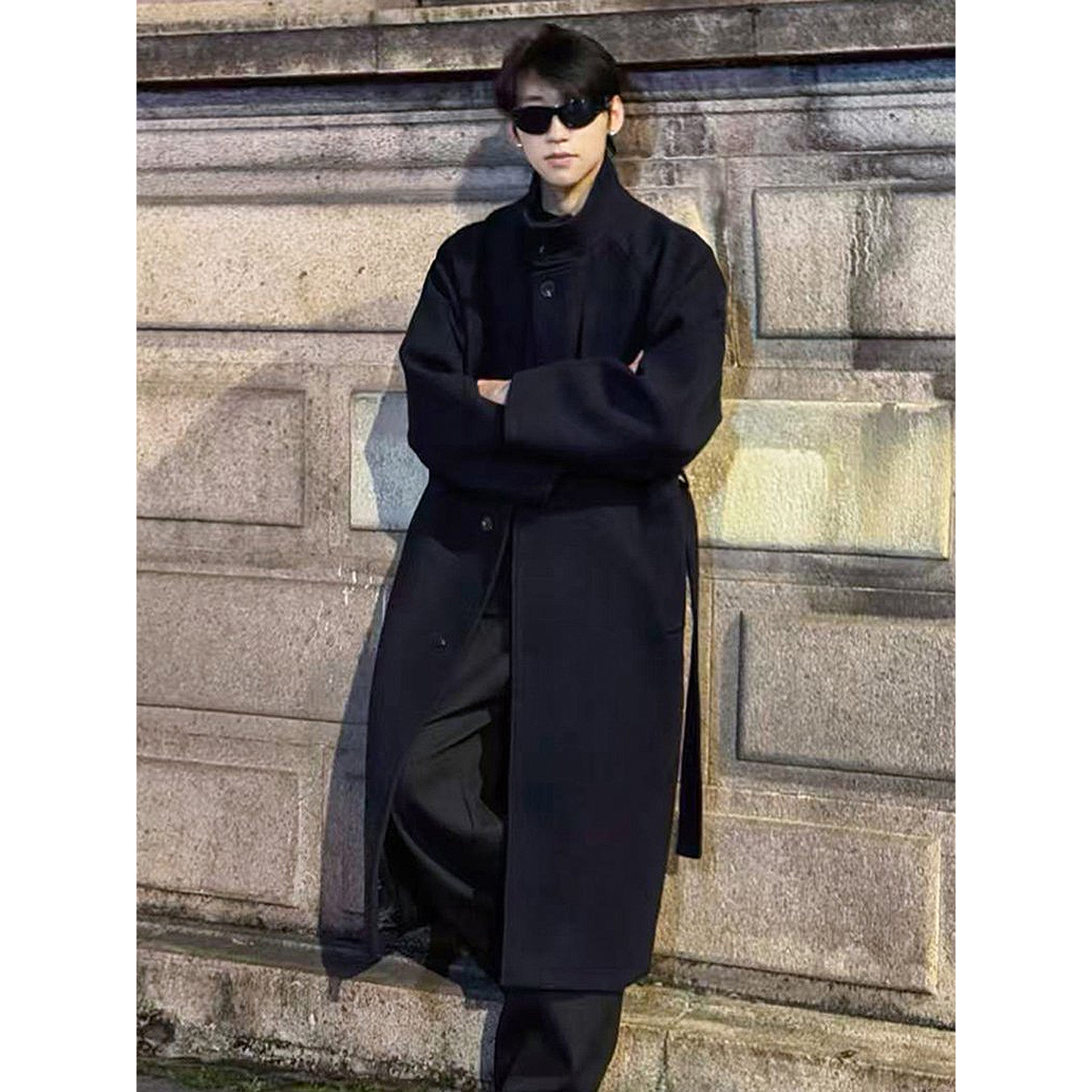 黑色红内垫肩毛呢大衣男款秋冬季韩系高级感中长款风衣英伦风外套