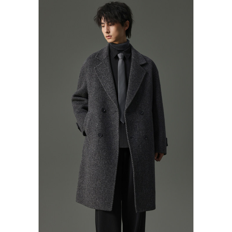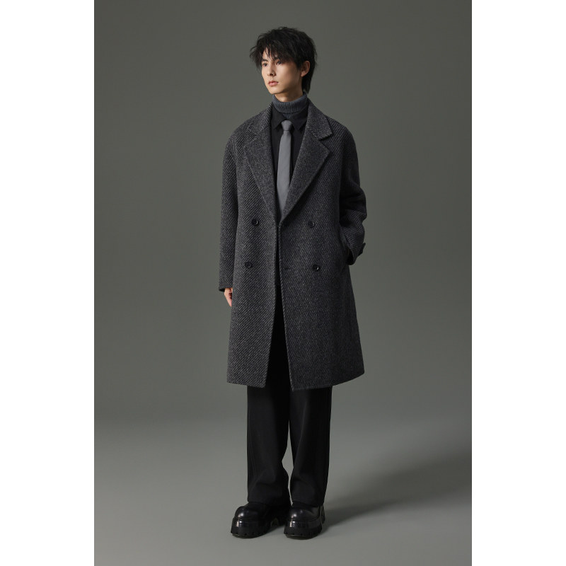 天猫高级感斜纹双面羊毛呢大衣男士中长款拼色高级感妮子风衣外套加厚