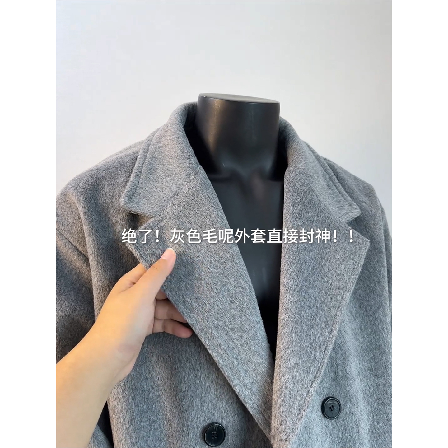 天高级感斜纹双面羊毛呢大衣男士中长款拼色高级感妮子风衣外套加厚