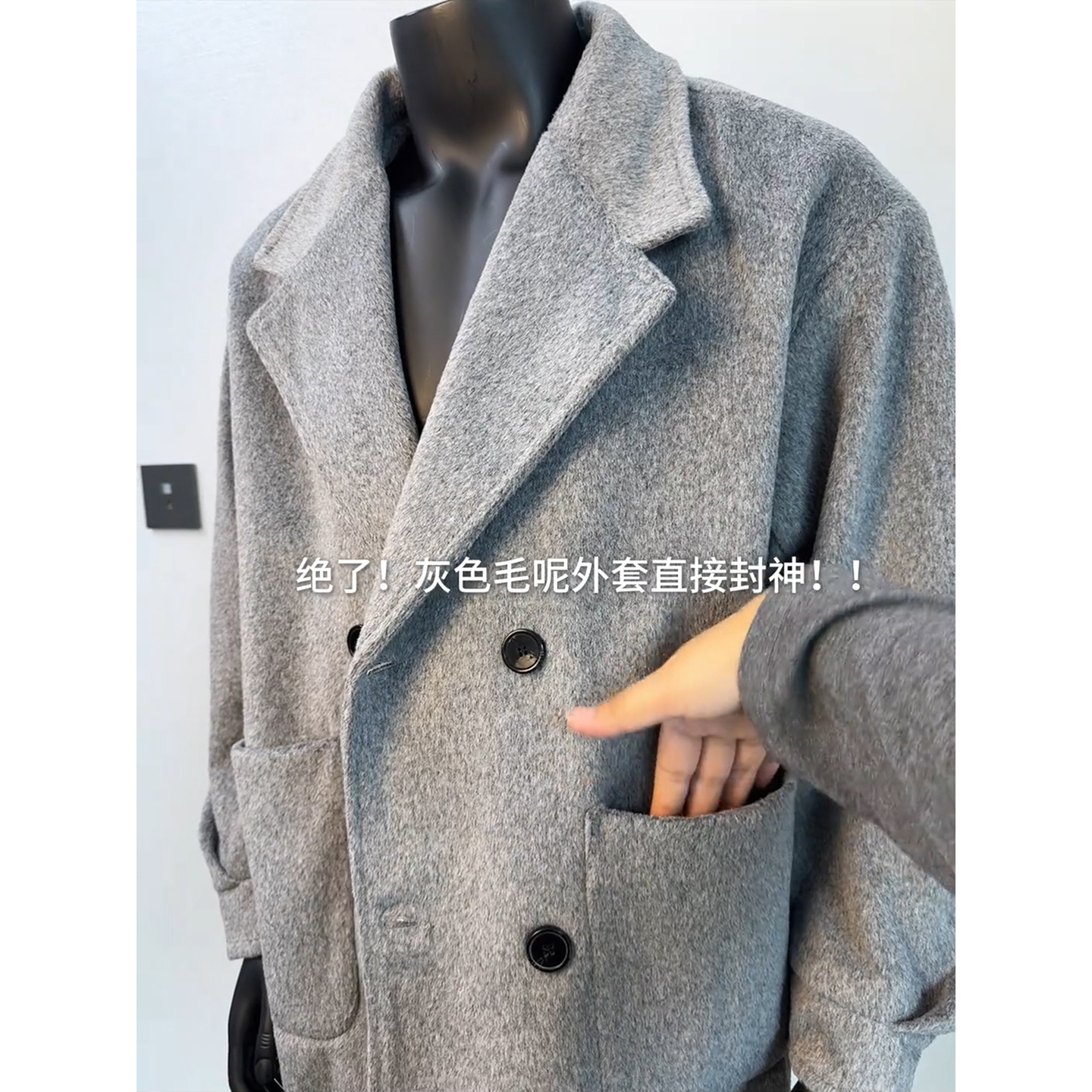 天猫韩系高级感短款毛呢大衣男冬季加绒加厚夹克风衣双排扣西装领外套