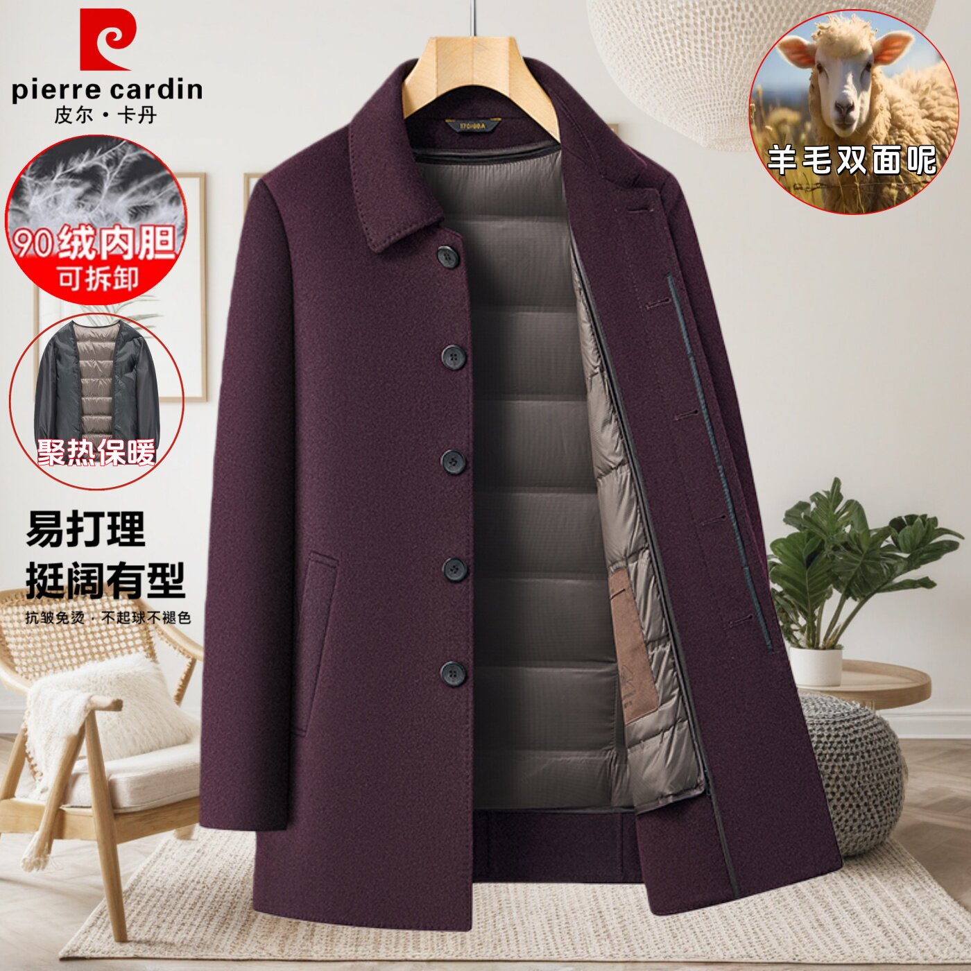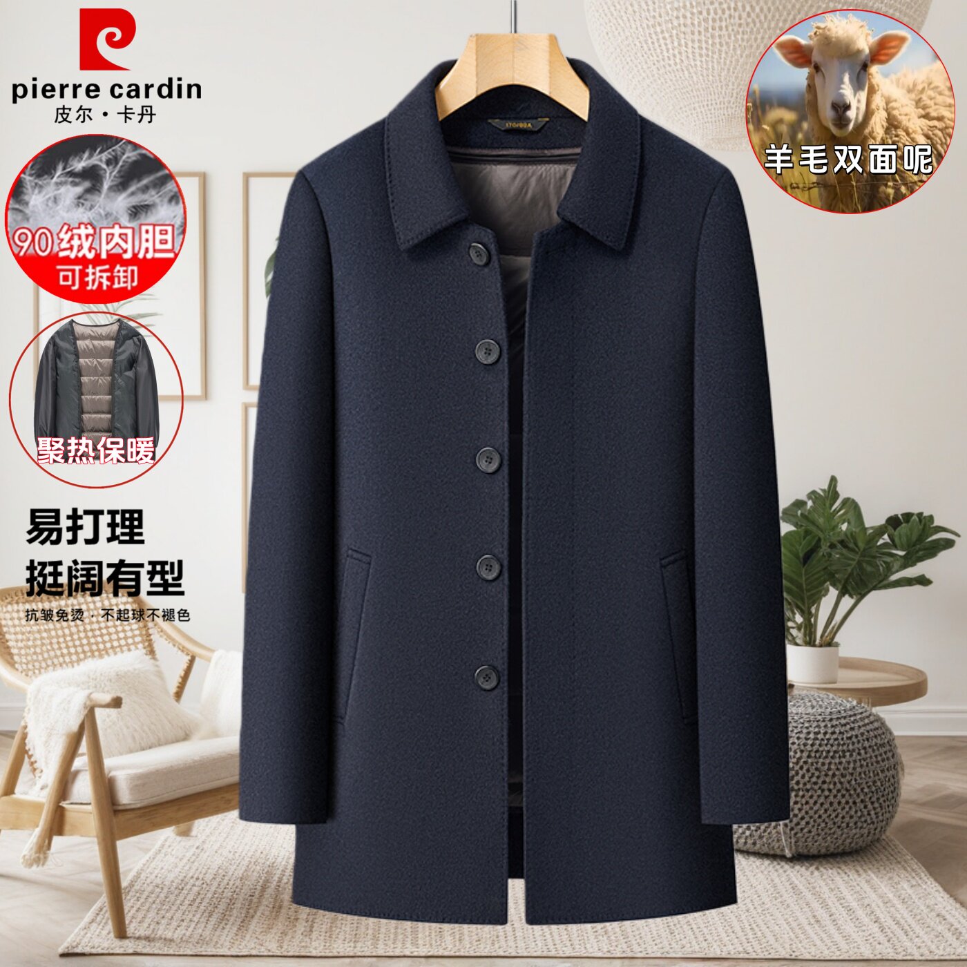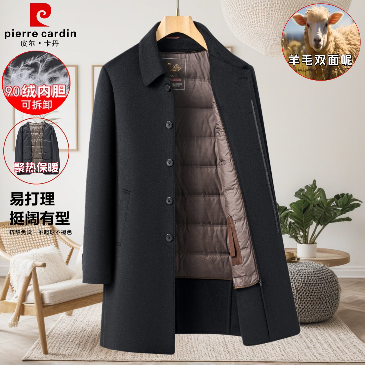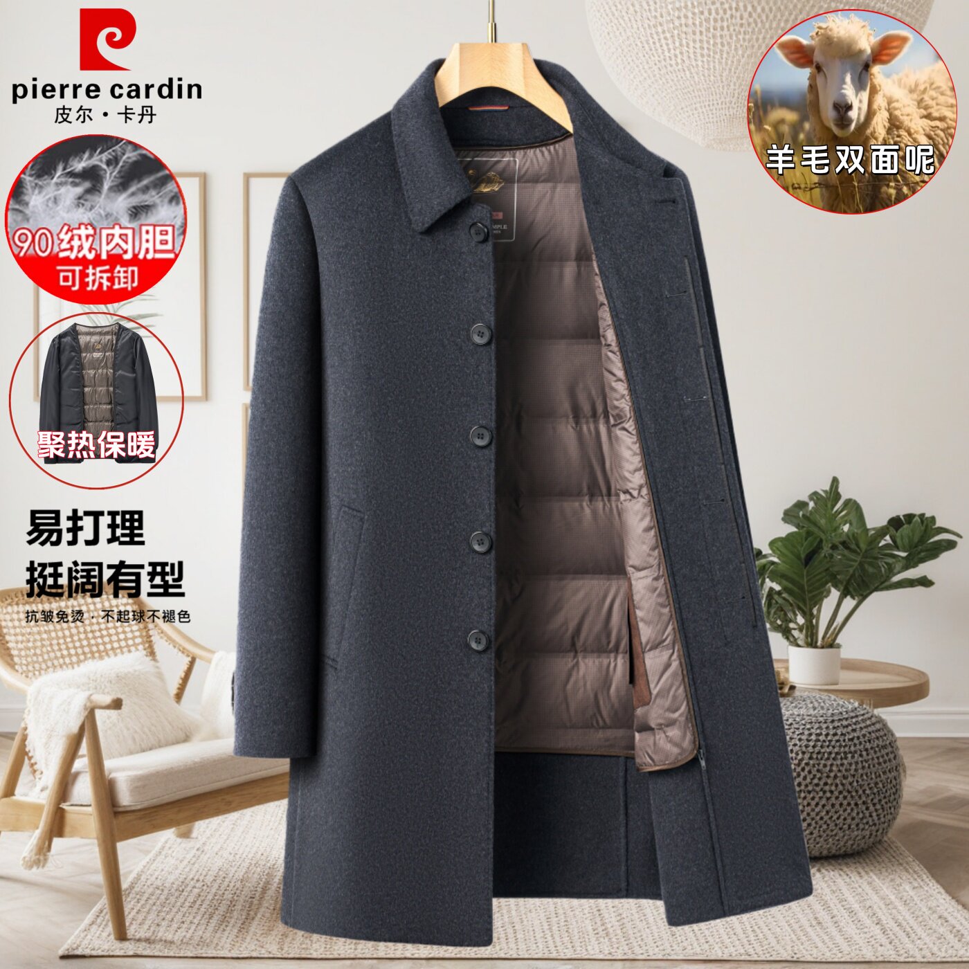 淘宝皮尔卡丹双面羊毛呢子大衣男中长款爸爸装羽绒内胆中老年风衣外套