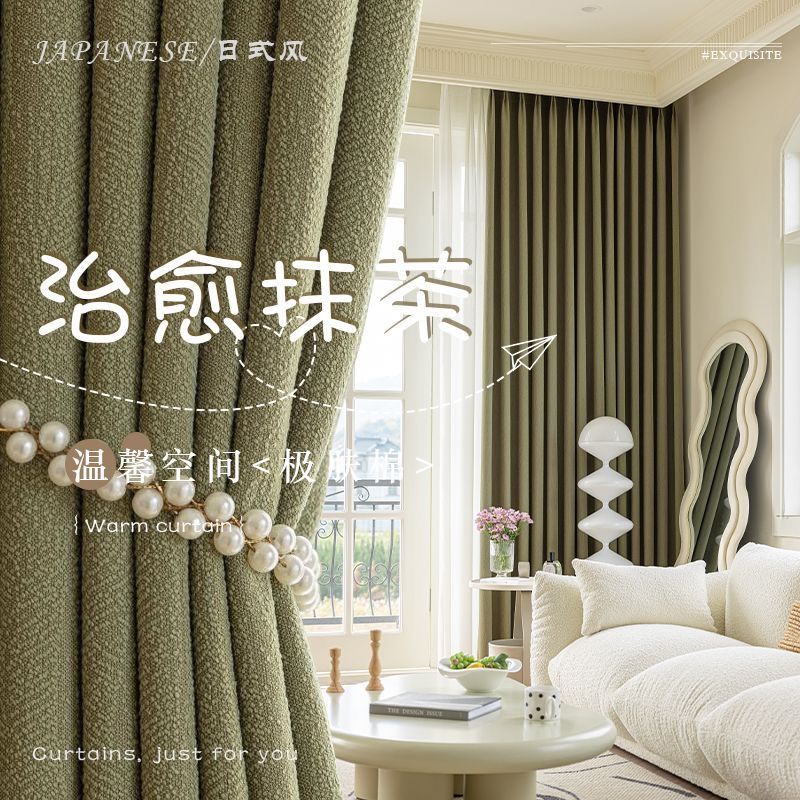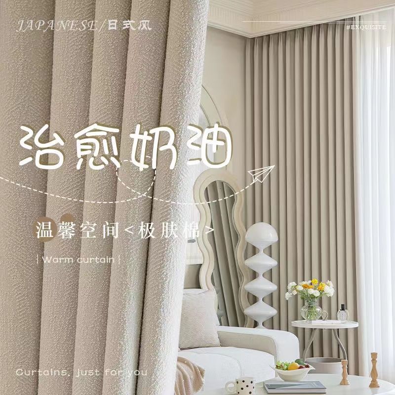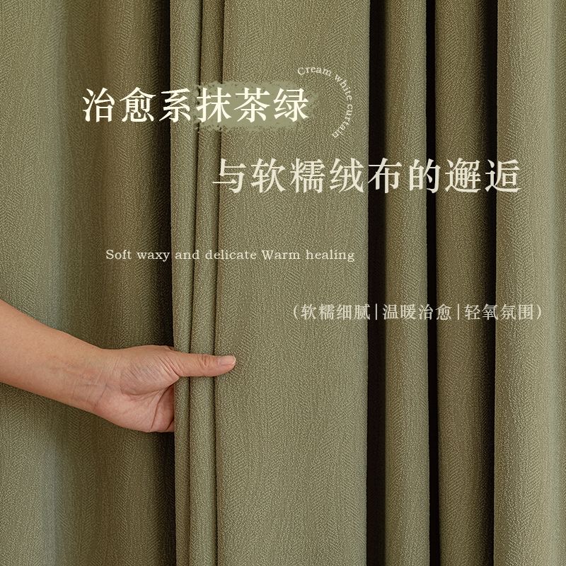 淘宝新款水芙棉纯色加厚窗帘卧室遮光小清新雪尼尔客厅阳台轻奢日系风