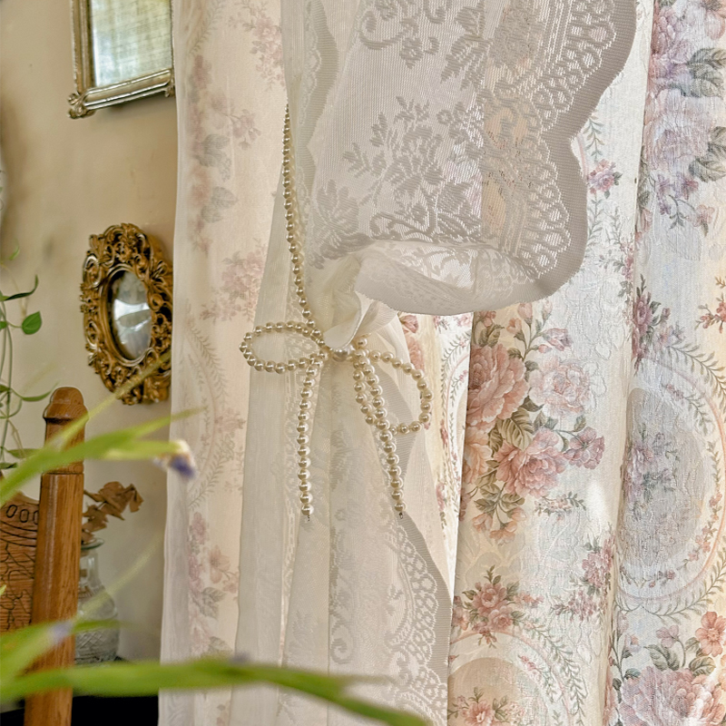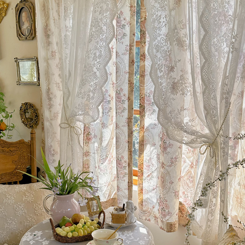 淘宝法式复古宫廷风印花布纱一体双层卧室窗帘半遮光隔断半帘氛围感