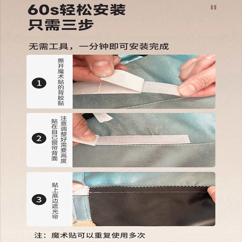 天2024新款全遮光窗帘免打孔魔术贴粘贴简易窗帘家用不透光遮挡隐私