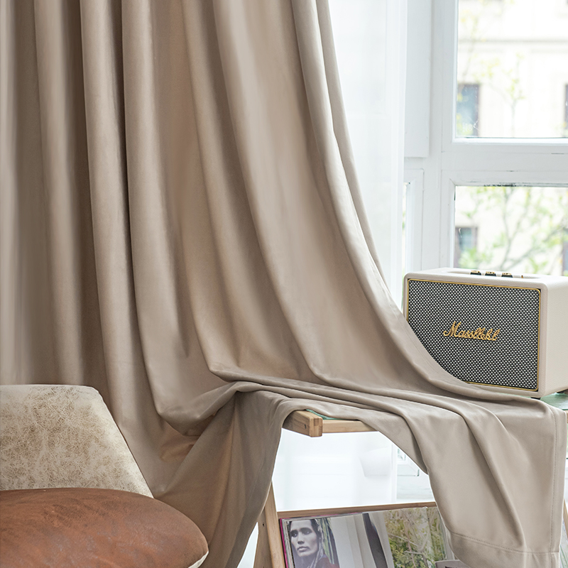 淘宝北欧窗帘奶茶色ins轻奢成品遮光卧室客厅现代纯色加厚丝绒天鹅绒