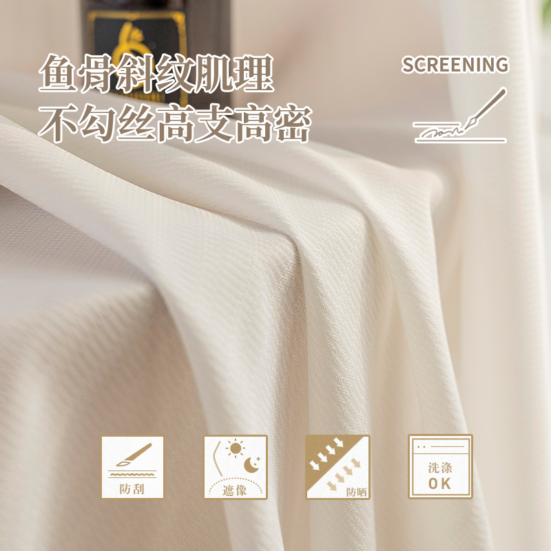 加厚全遮光卧室窗帘防晒客厅北欧现代简约2024年新款挂钩纯色布料