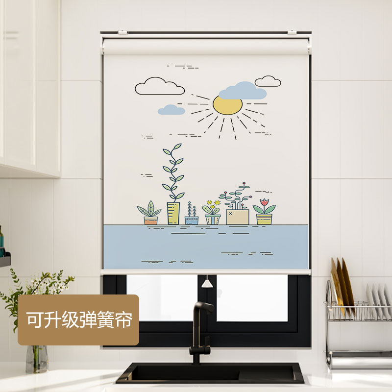 天猫2025新款全遮光窗帘免打孔安装厨房卫生间卷帘卷拉式遮光遮阳帘