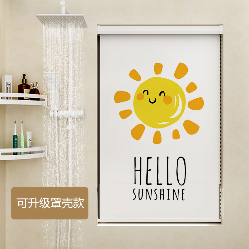 喜杏无绳推拉窗帘卷帘打孔浴室厕所卫生间卧室防水全遮光遮挡帘