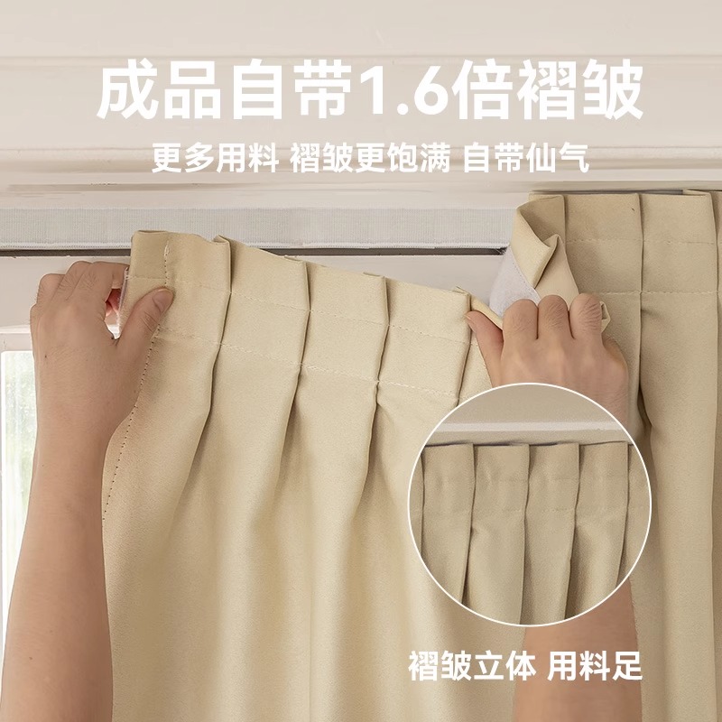 淘北欧窗帘奶茶色ins轻奢成品遮光卧室客厅现代纯色加厚丝绒天鹅绒