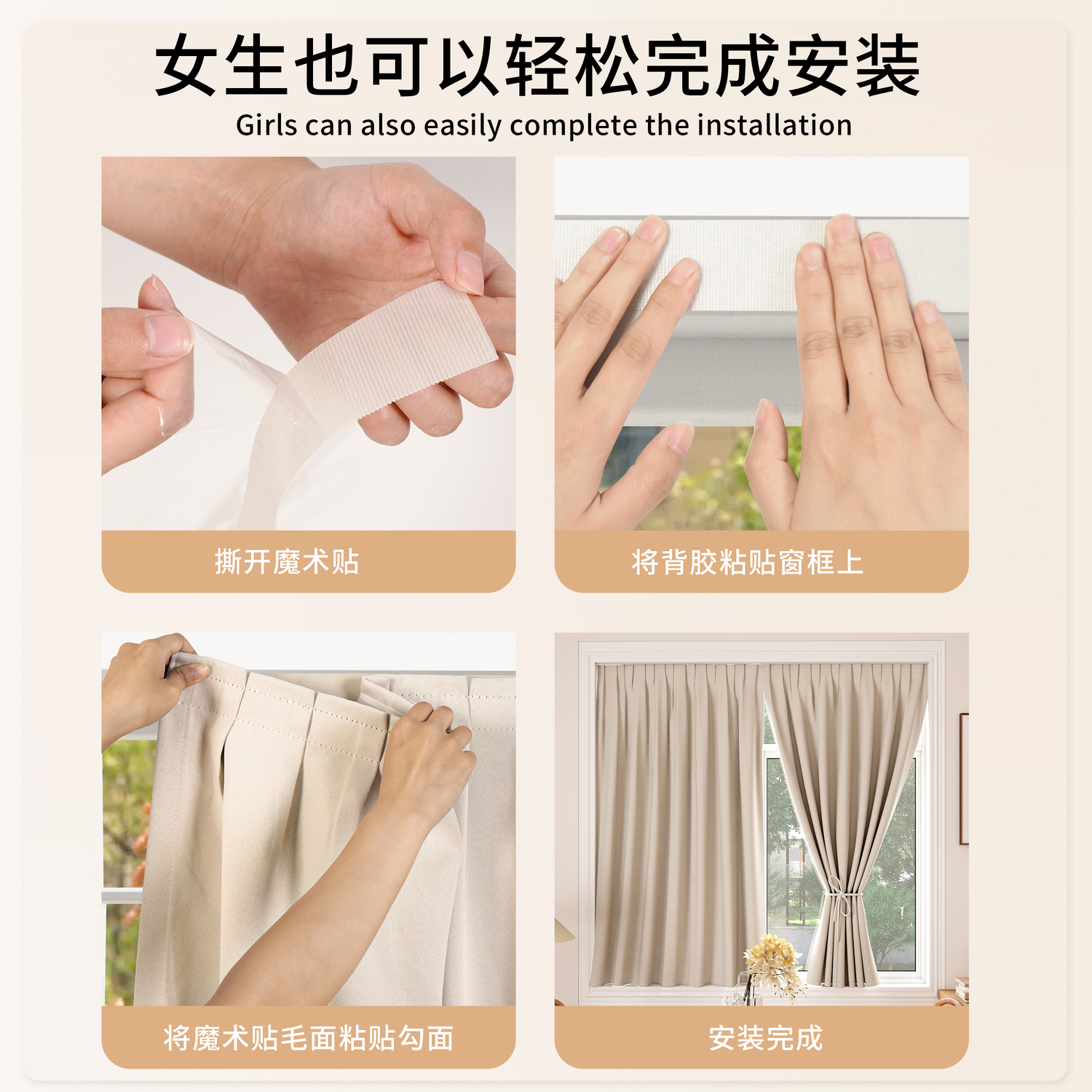 天猫魔术贴窗帘遮光2025新款自粘式免打孔安装遮阳窗户防晒隔热遮挡帘