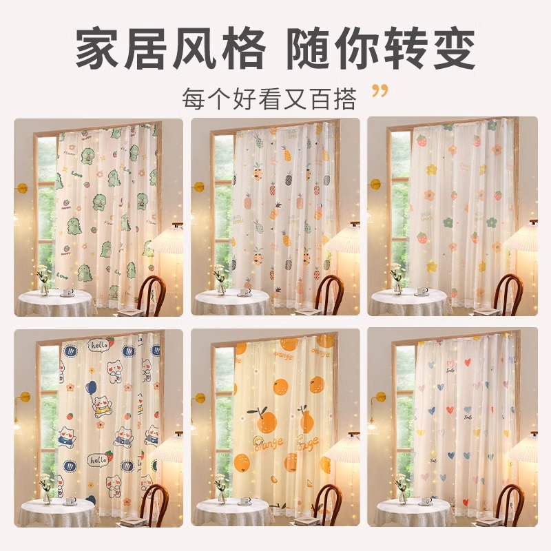 淘法式复古宫廷风印花布纱一体双层卧室窗帘半遮光隔断半帘氛围感
