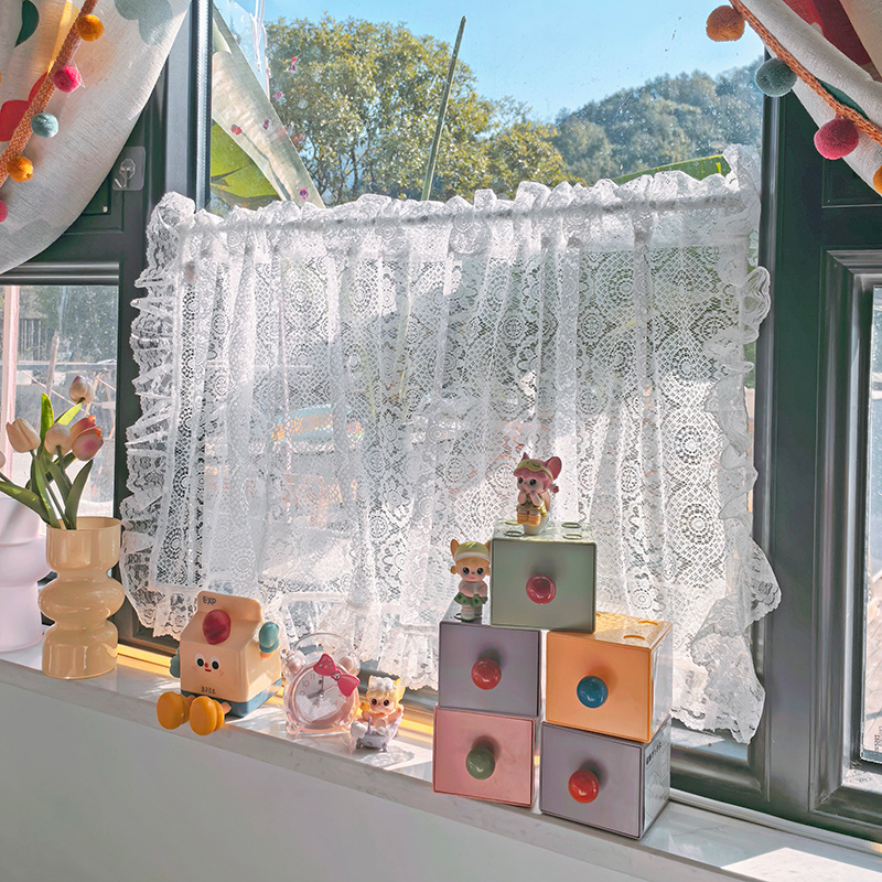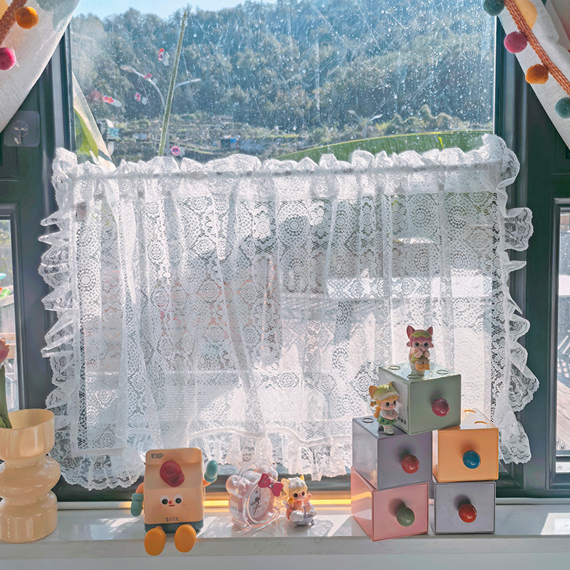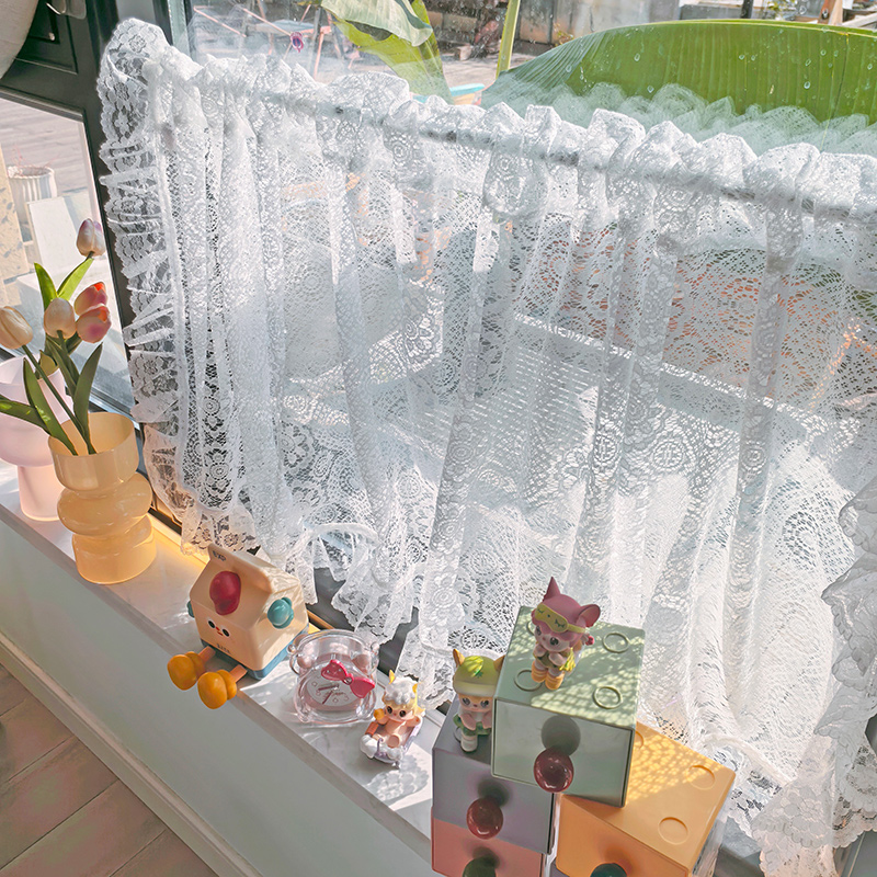 淘法式复古蕾丝门帘短帘古典纱帘半帘窗帘透光纱风水帘拱形门洞穿杆