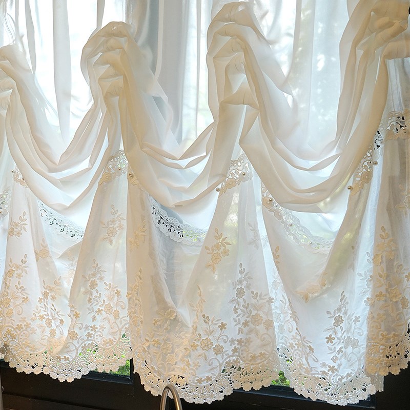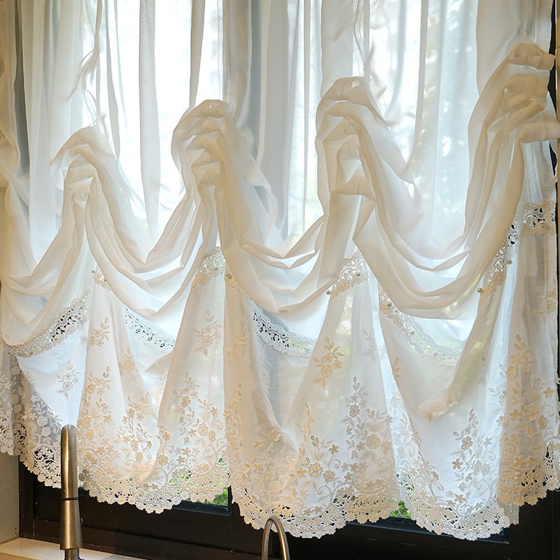 淘宝法式刺绣镂空提拉帘门帘半帘窗帘短款帘隔断帘厨房窗户屏风遮挡