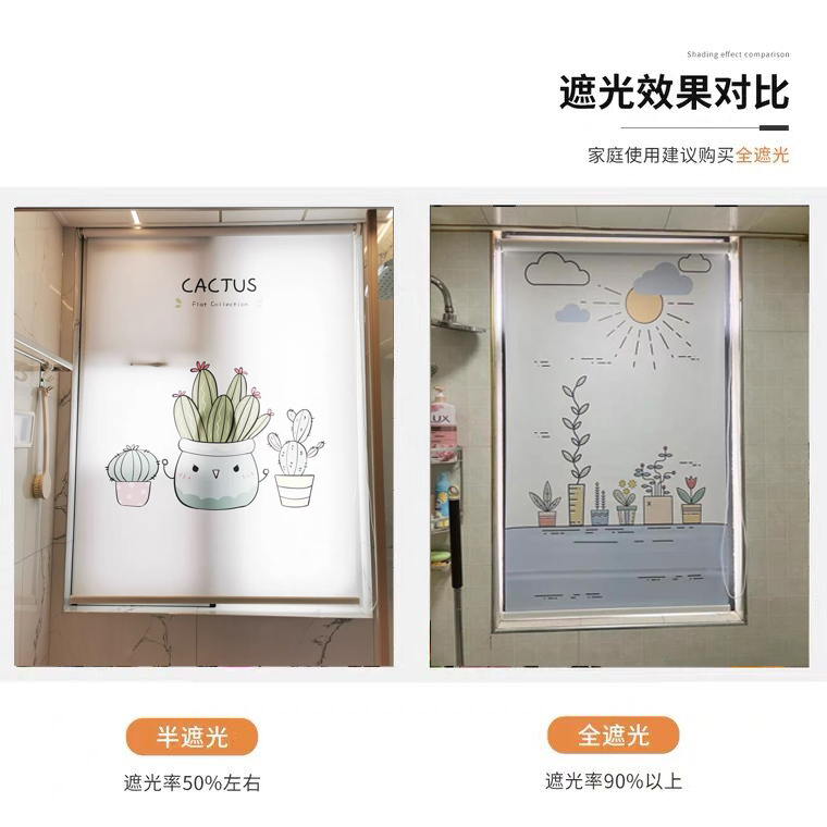 淘宝手拉卷帘窗帘卷拉式遮阳免打孔安装办公室卫生间阳台全遮光防晒帘