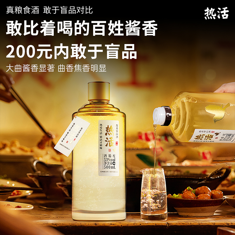 天猫【全新升级99/瓶】酣客热活酱香型白酒53° 纯粮500ml 整箱更划算
