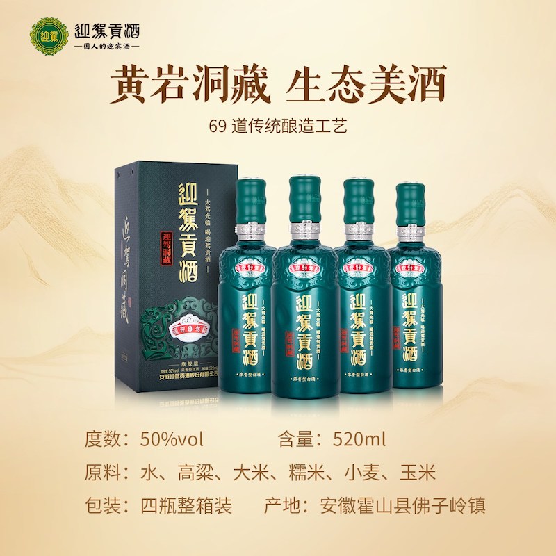天猫迎驾贡酒迎驾洞藏9浓香型白酒50度520ml*4瓶整箱装 商务宴请送礼