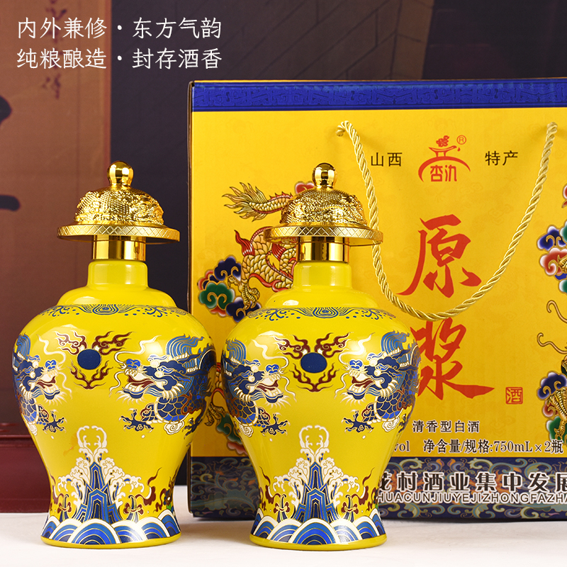 淘宝杏花村产地双龙戏珠酒清香型白酒53度750ml*2瓶礼盒装白酒