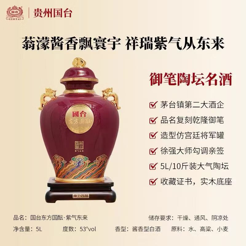 淘宝国台东方国酝紫气东来5L酱香白酒53度10斤送底座