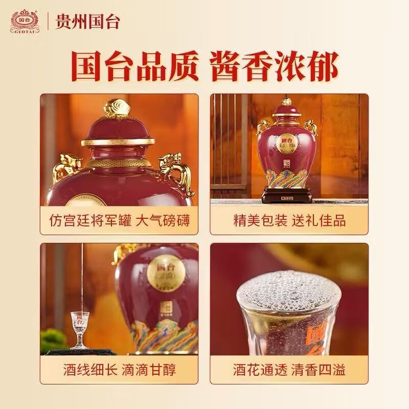 国台东方国酝紫气东来是一款优质酱香白酒,酒精度数为53度,容量为5L,重达10斤。这款白酒以优质的高粱为原料,采用传统的酿造工艺,经过长时间的陈酿而成。其香气浓郁,口感醇厚,回味悠长。此外,本产品还配备了精美的底座,极具收藏价值。无论是赠送亲友还是收藏自用,都是极佳的选择。