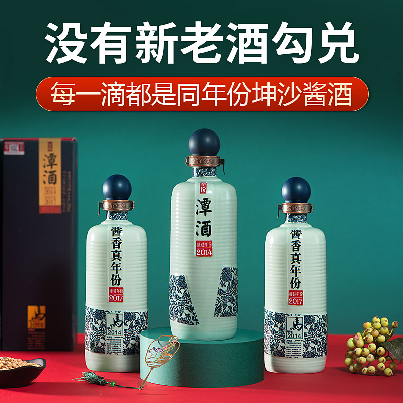 天猫【酒厂直营】年份潭酒2014酱香型纯粮食白酒53度大曲坤沙11年酒龄