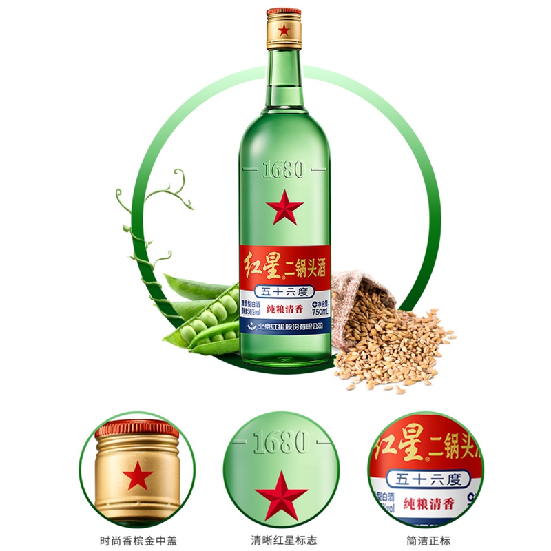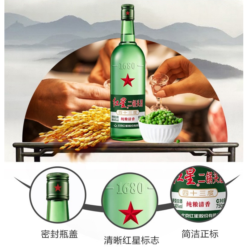 淘宝北京红星二锅头 56度 43度 绿瓶750ml 清香型白酒 纯粮食 口粮酒