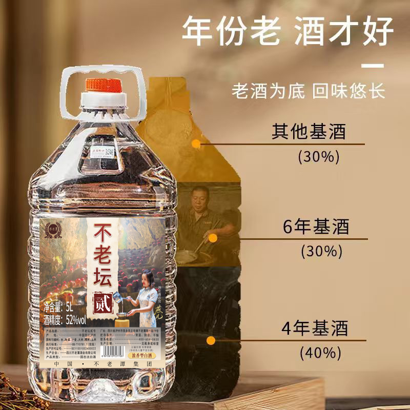 天猫不老坛贰号白酒纯粮食酒泡酒专用酒红高粱酒52度散装桶装10斤