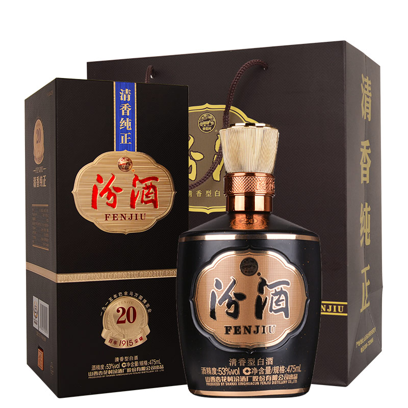 天猫汾酒53度1915巴拿马20汾酒475ml清香型白酒礼盒装(多规格)