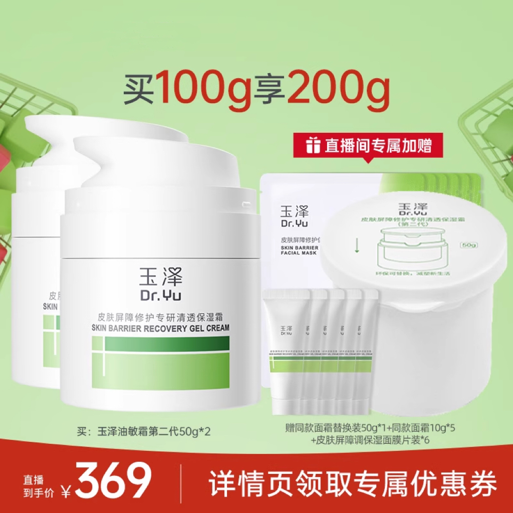 天猫【达人专享】玉泽第二代屏障修护舒缓面霜50g*2保湿青蒿维稳 DB