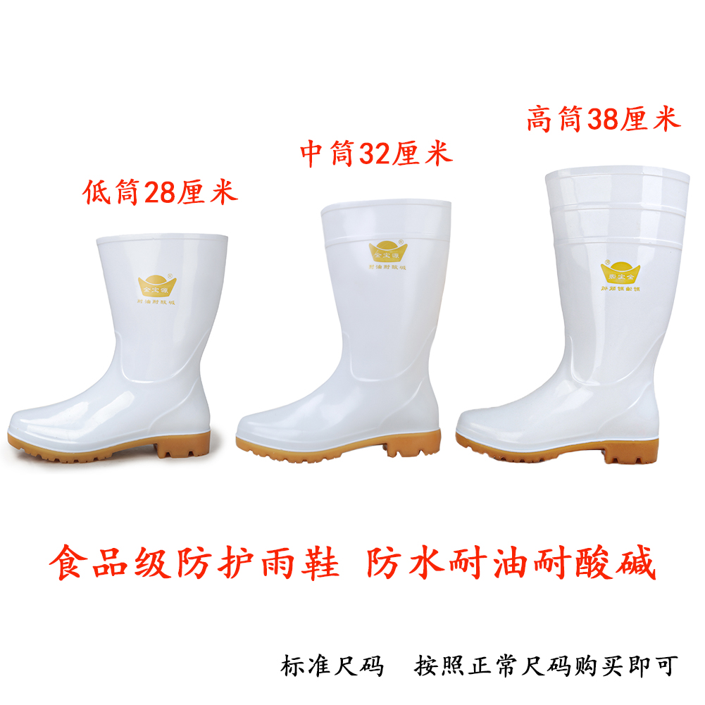 淘宝食品专用雨鞋白色低中高筒加厚牛筋底防水防滑耐油耐磨耐酸碱雨靴