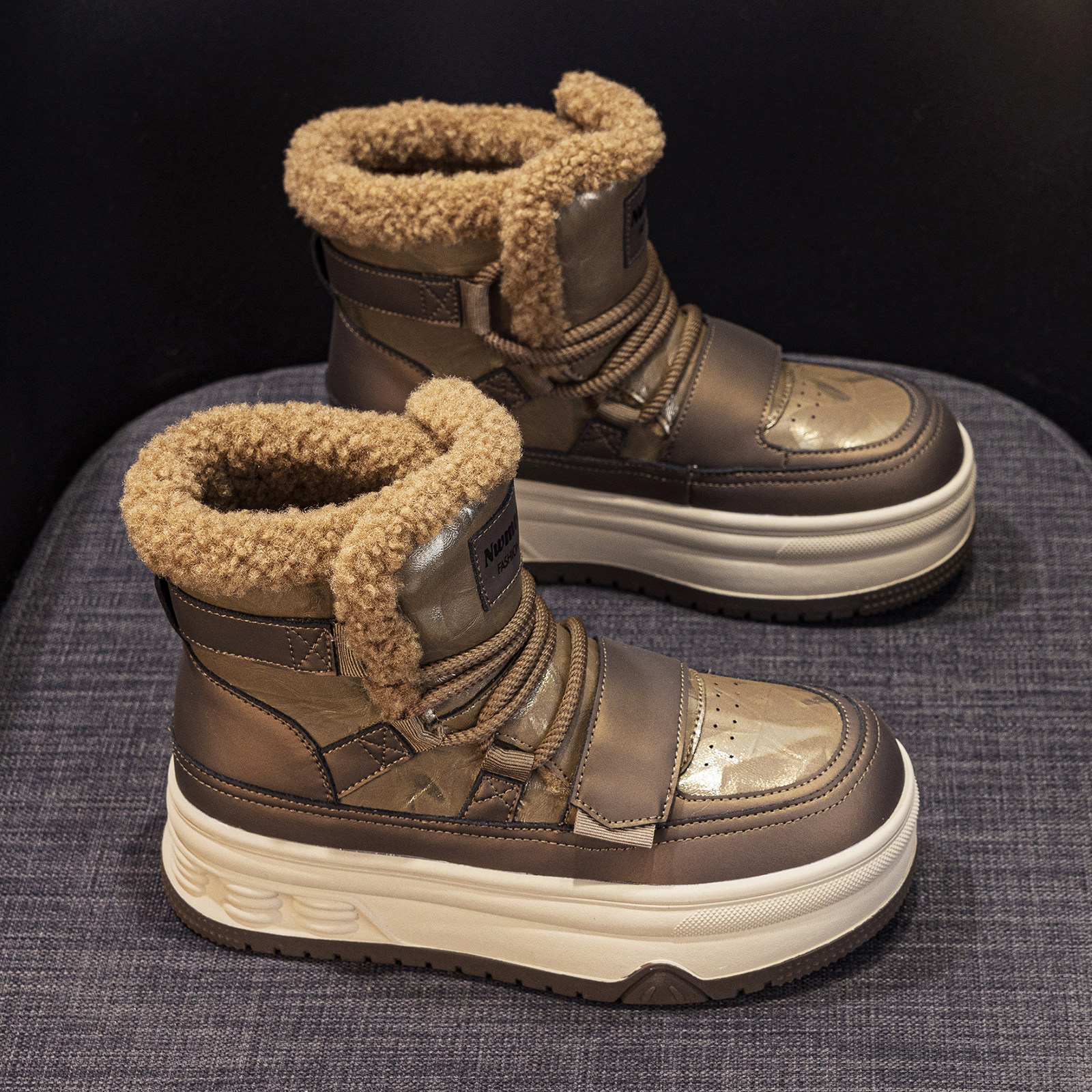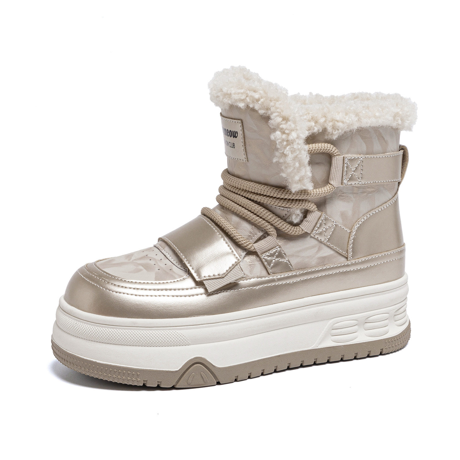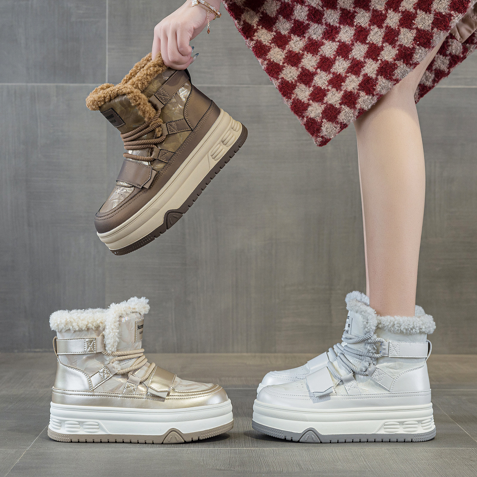 淘品牌清仓真皮雪地靴女2025冬季新款厚底增高加绒棉靴保暖勃肯棉鞋