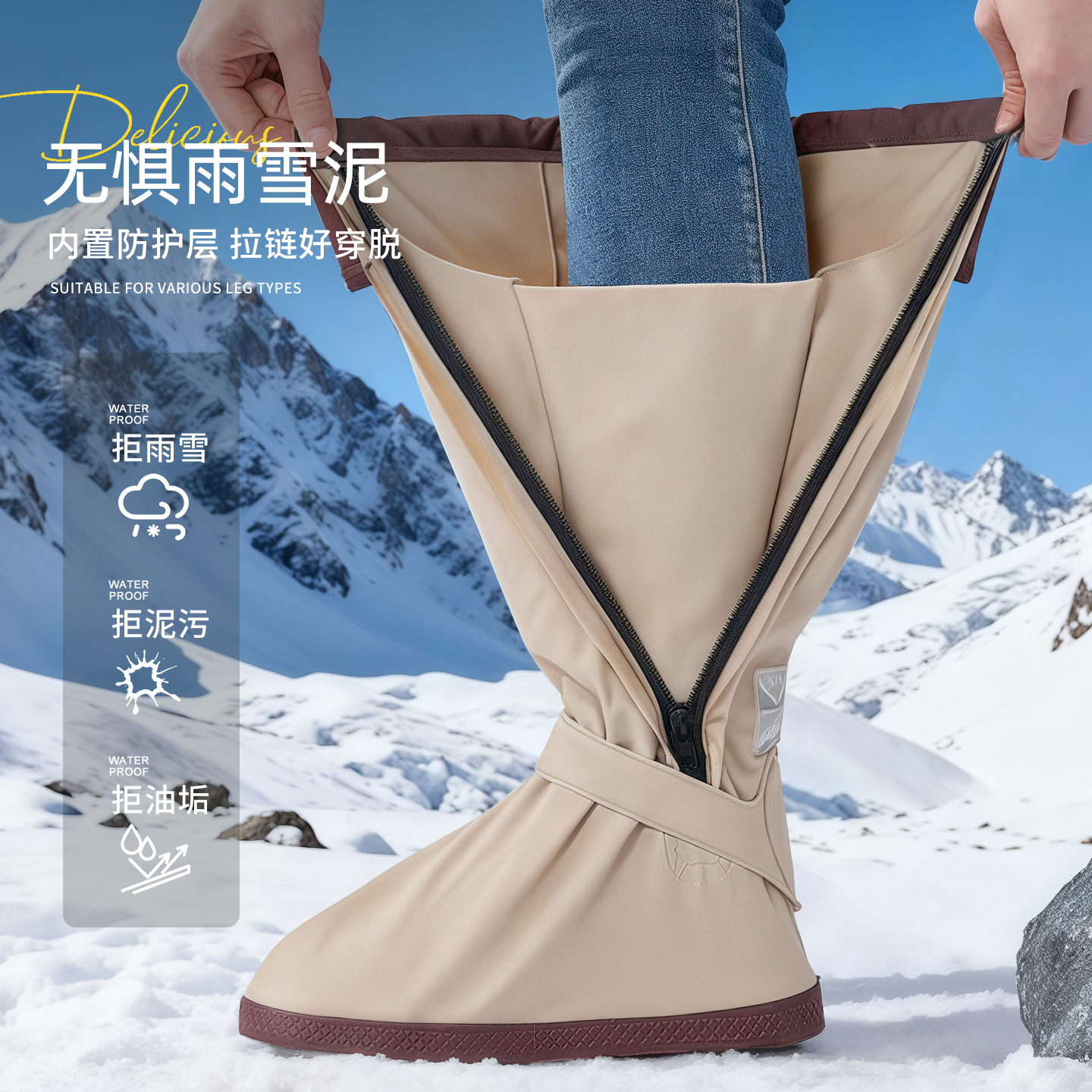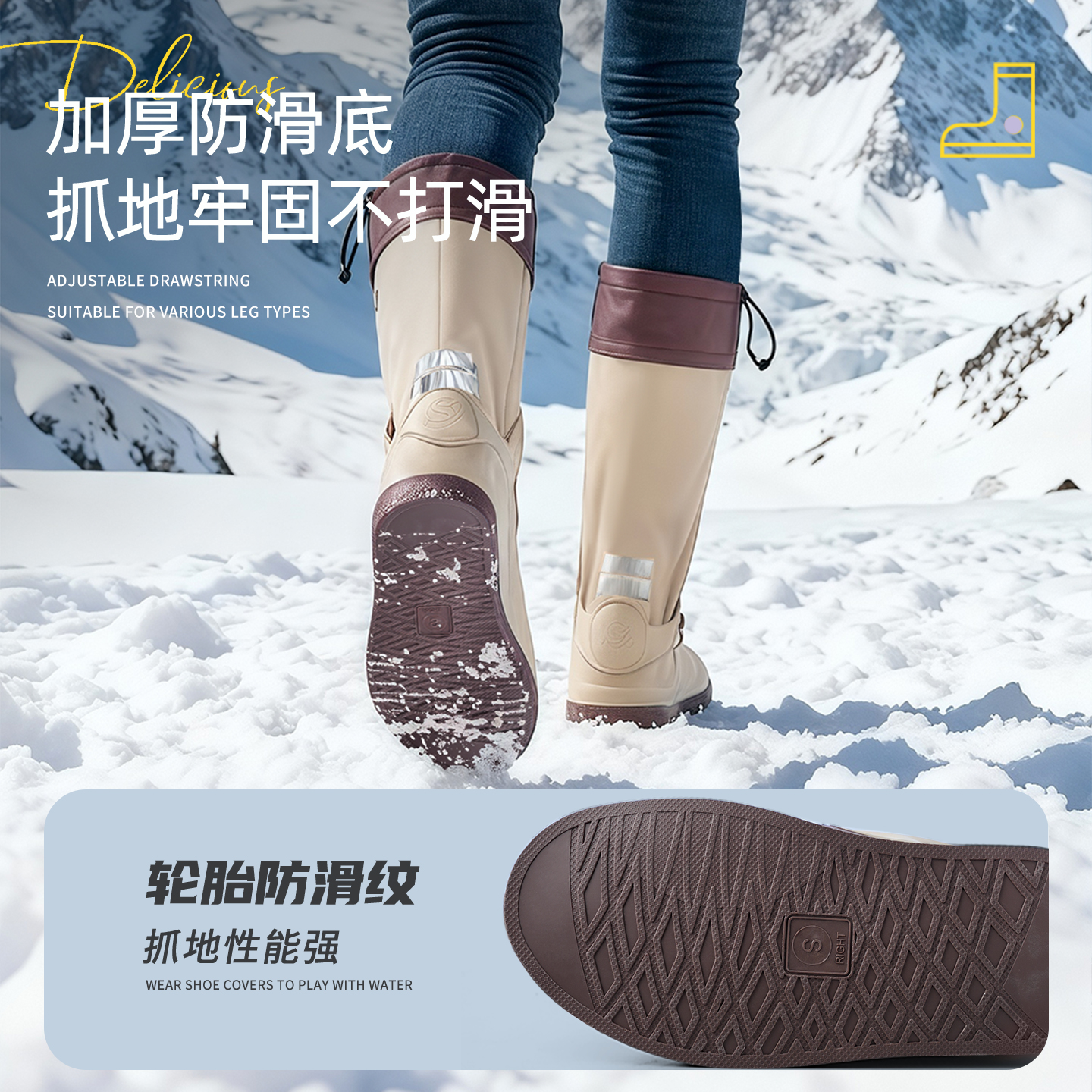 天猫防雪鞋套防水防滑加厚耐磨滑雪玩雪装备冬天下雨雪地脚套雨鞋雨靴