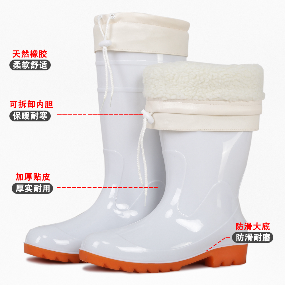 冬季雨鞋白色食品卫生靴加棉款防水保暖雨靴防滑加绒水鞋工作水靴