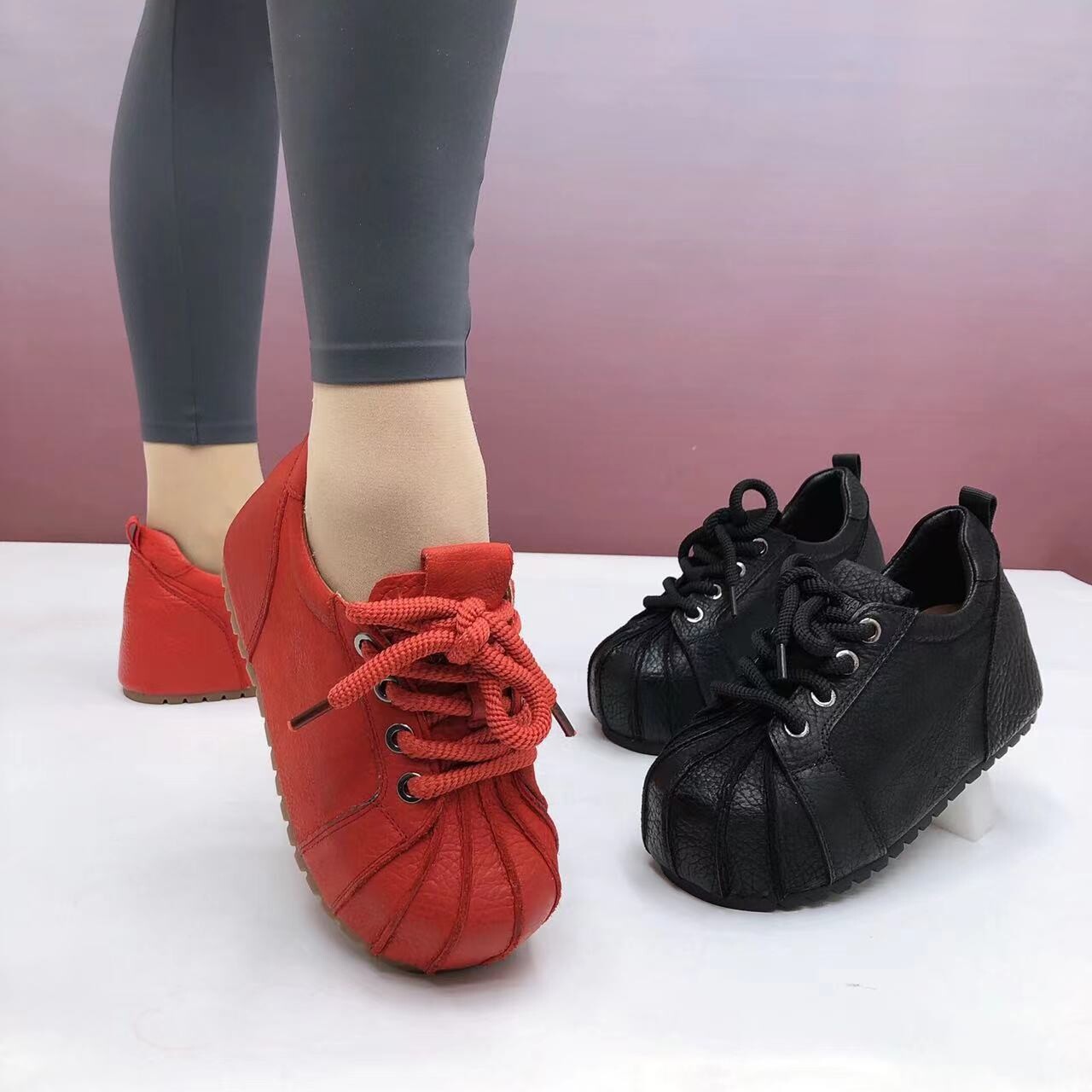 2026年春秋新款复古真皮女鞋,融合经典勃肯风格与现代时尚设计,采用优质头层牛皮打造,质感细腻、透气耐穿。鞋款内置隐形增高设计,轻松拉长腿部线条,兼顾舒适与优雅。厚底设计不仅提升整体造型感,更提供全天候缓震支撑,适合长时间行走。简约复古的线条搭配百搭色系,轻松驾驭通勤、休闲、约会等多种场合。无论是搭配牛仔裤、连衣裙还是半身裙,都能展现随性而不失品味的都市风范。这款休闲百搭单鞋,是追求舒适与时尚并重的现代女性的理想之选。