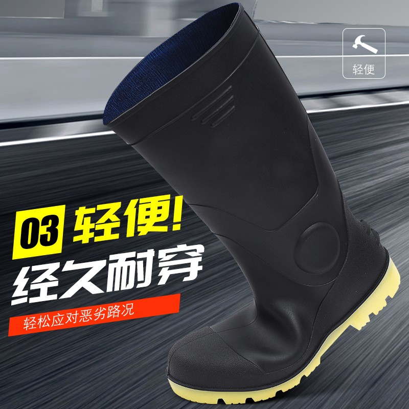 淘飞鹤雨靴反光条矿工防砸钢包头铁头高筒靴高腰T215型劳保雨鞋雨靴
