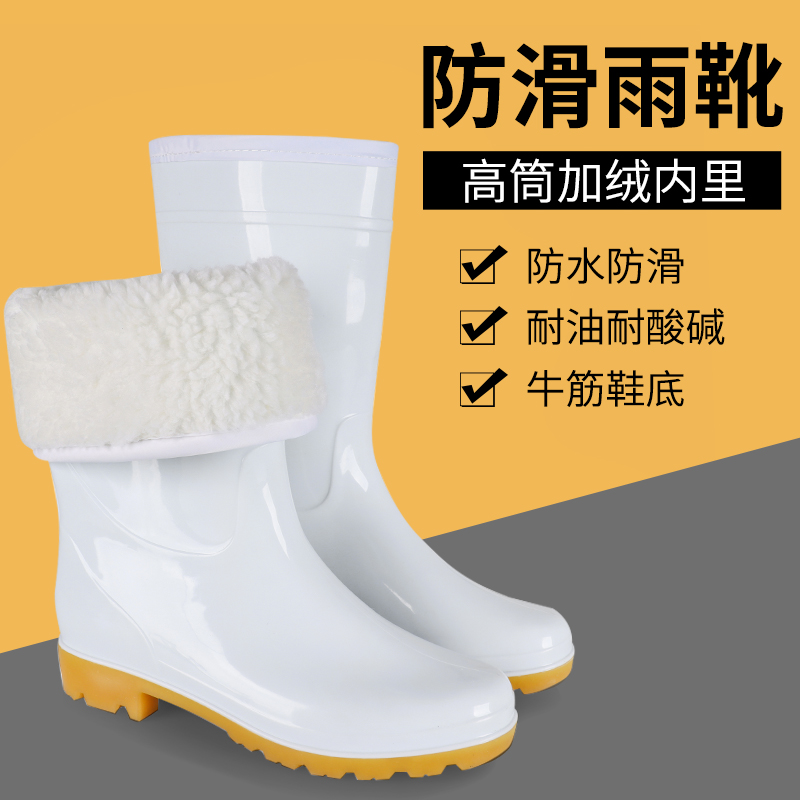 淘宝冬季雨鞋白色食品卫生靴加棉款防水保暖雨靴防滑加绒水鞋工作水靴